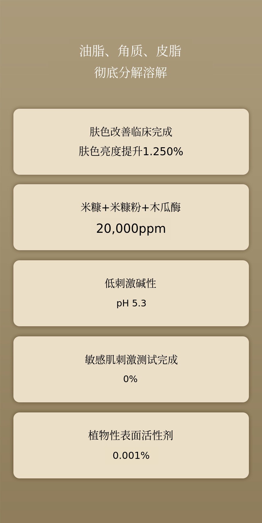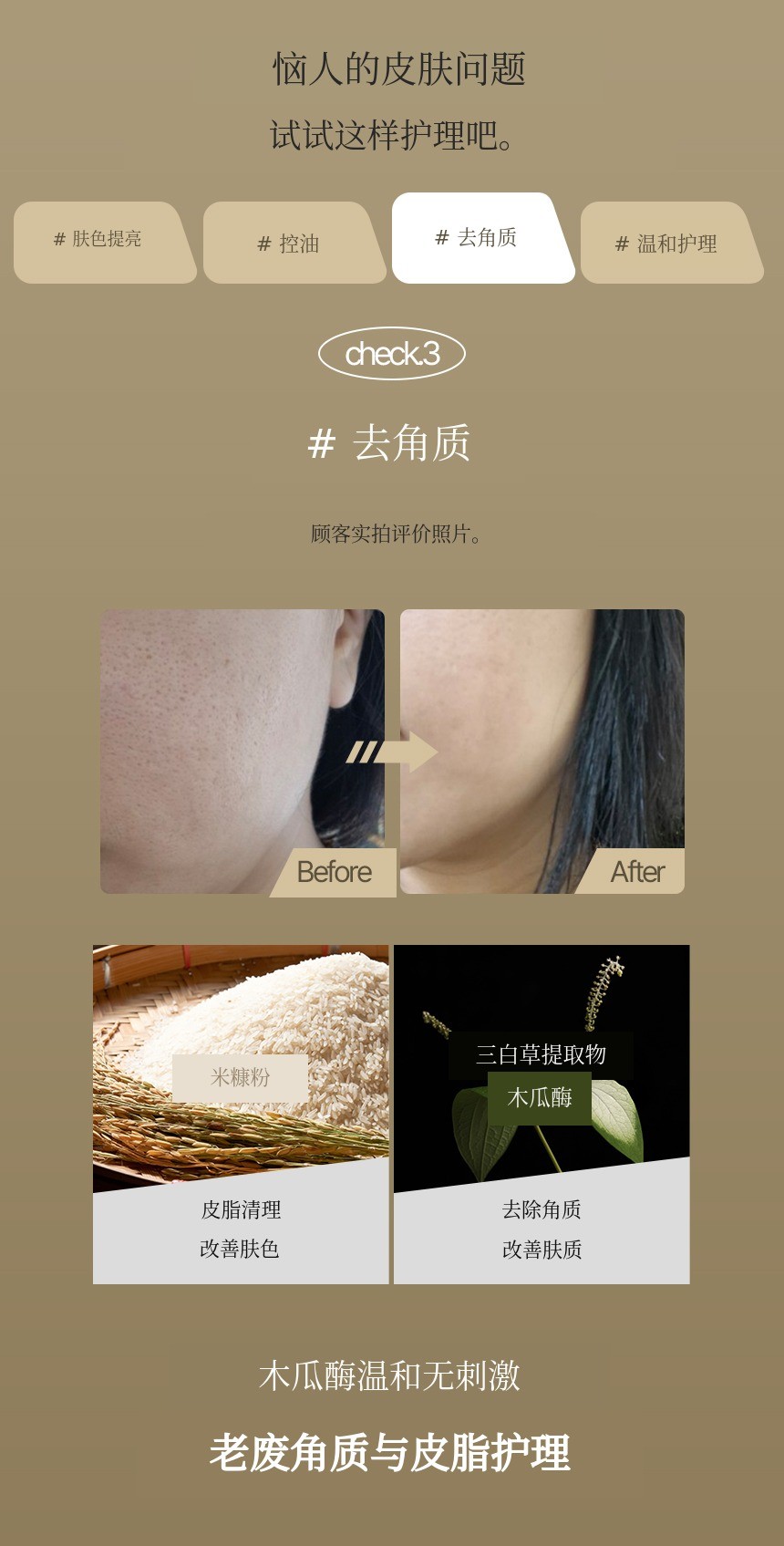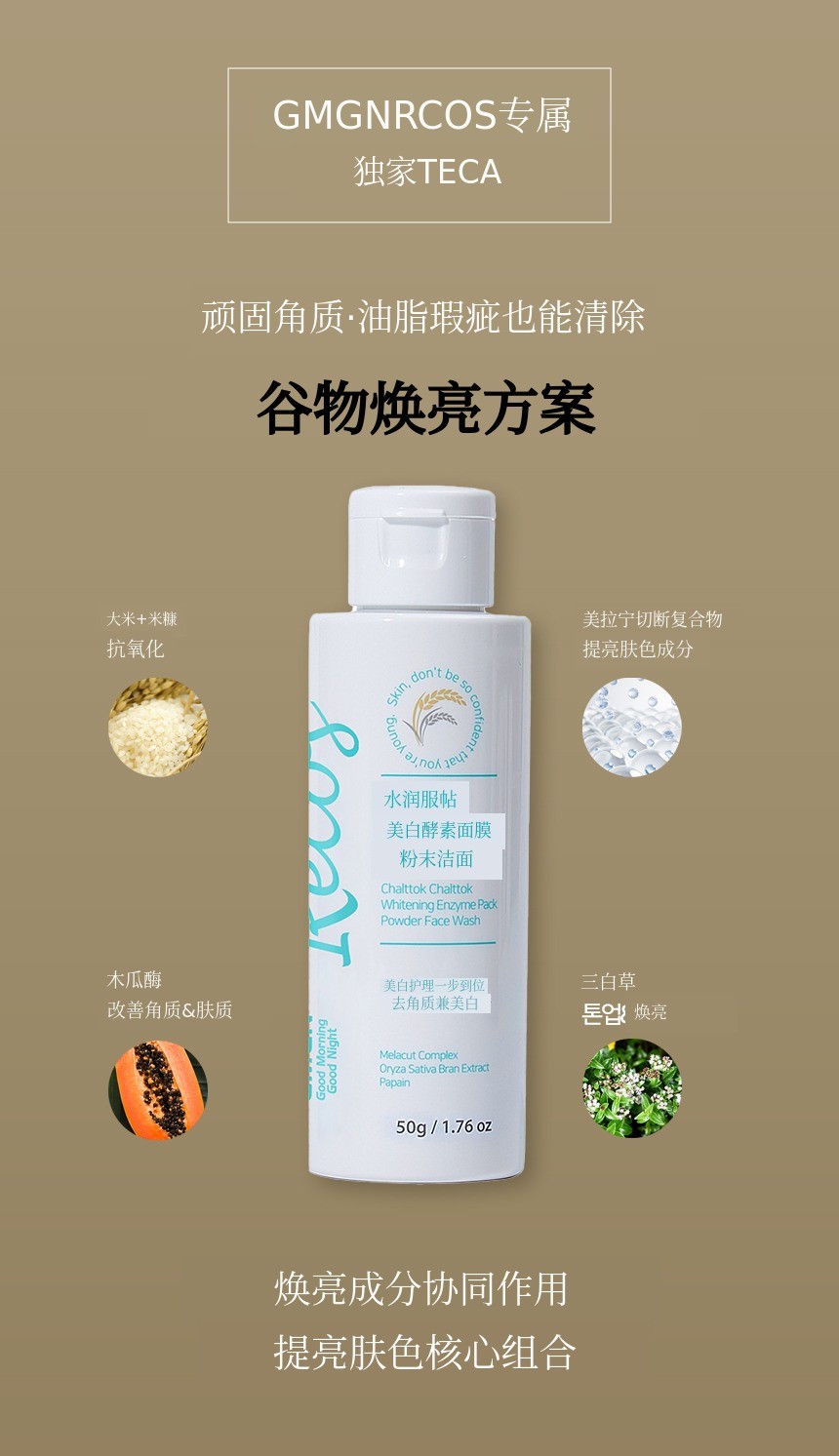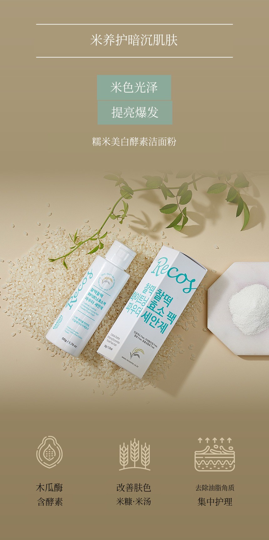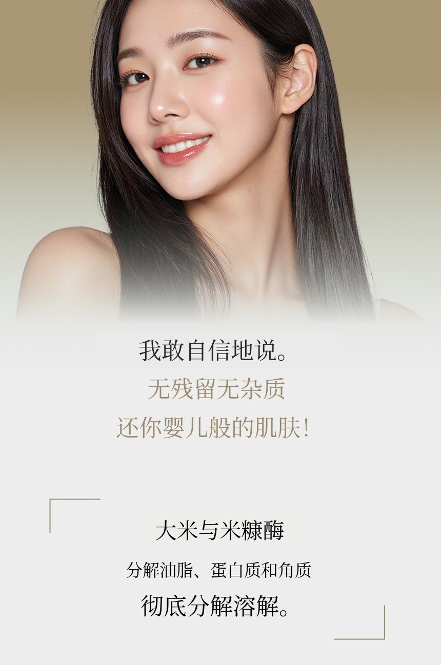 将米汤和米糠提取物中的酶结合,护理肤色,打造鸡蛋般光滑的肌肤。