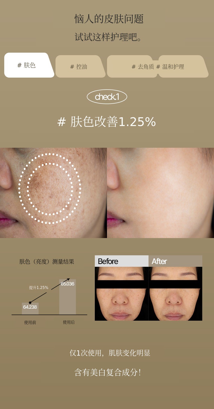 经临床验证的1.250%肤色改善效果