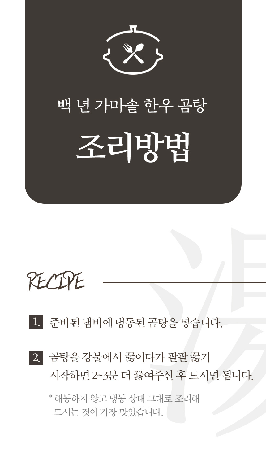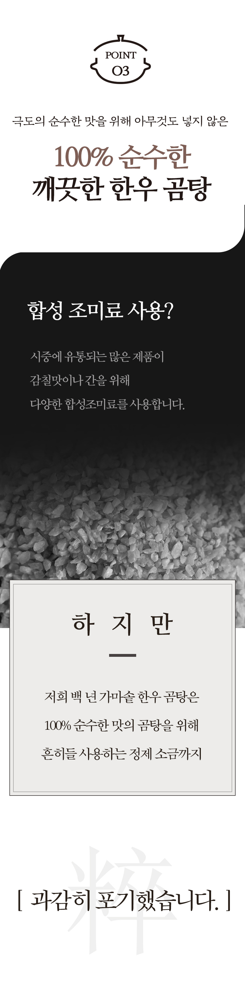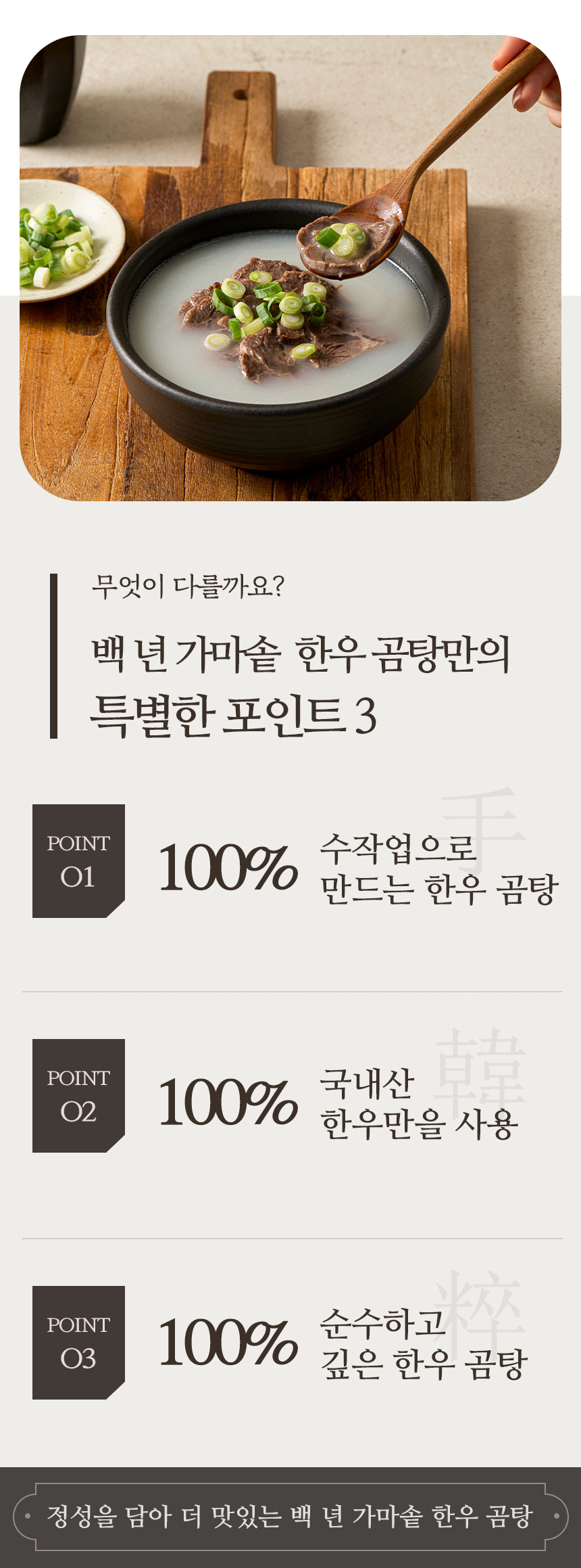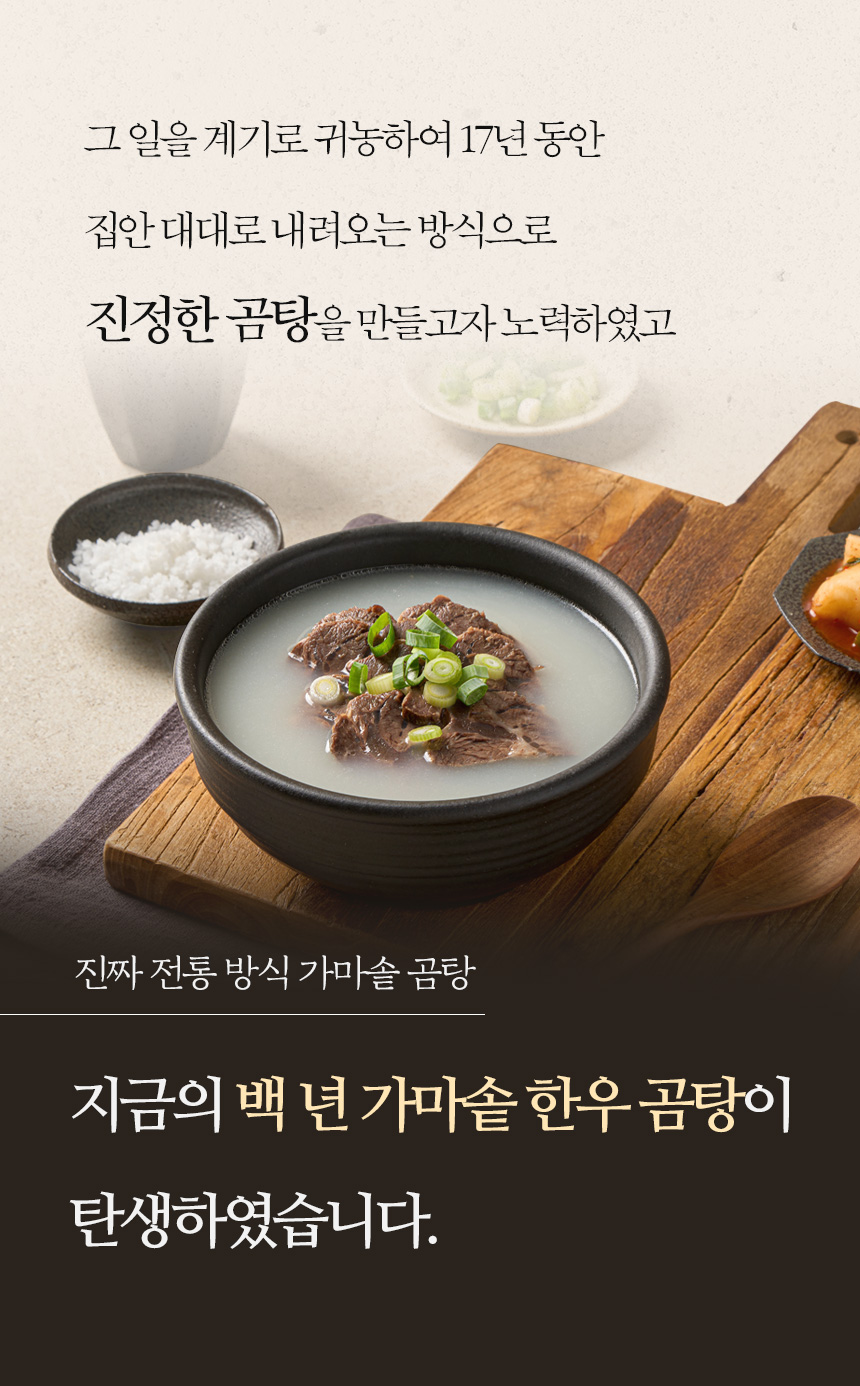 이 곰탕의 깊고 진한 맛을 함께 공감하고 응원해 주실 분들을 만나는 것이 저희에게는 큰 의미입니다.