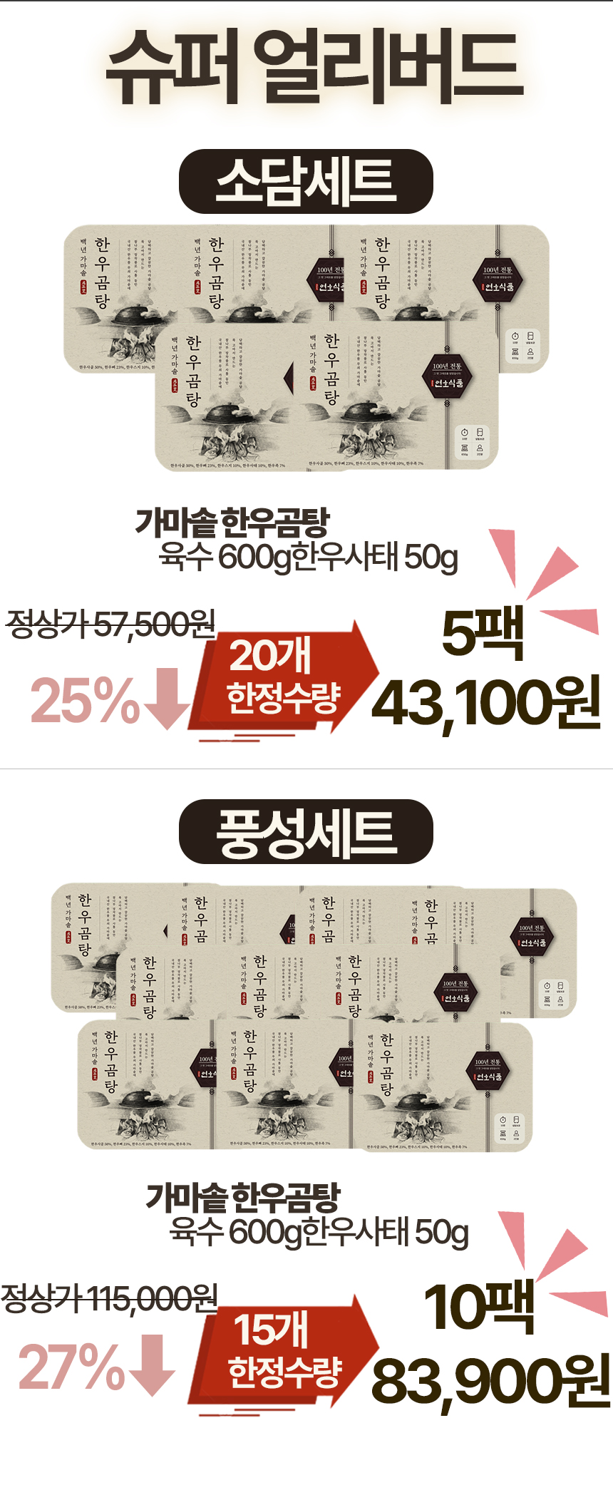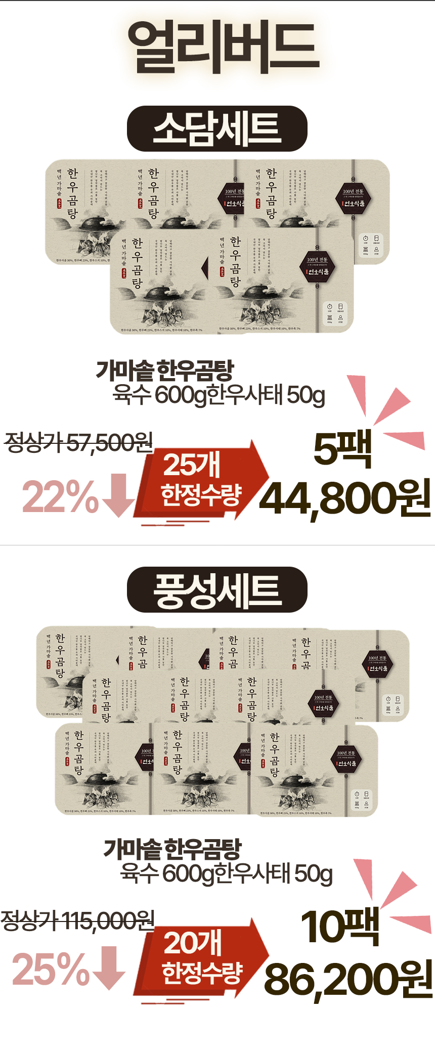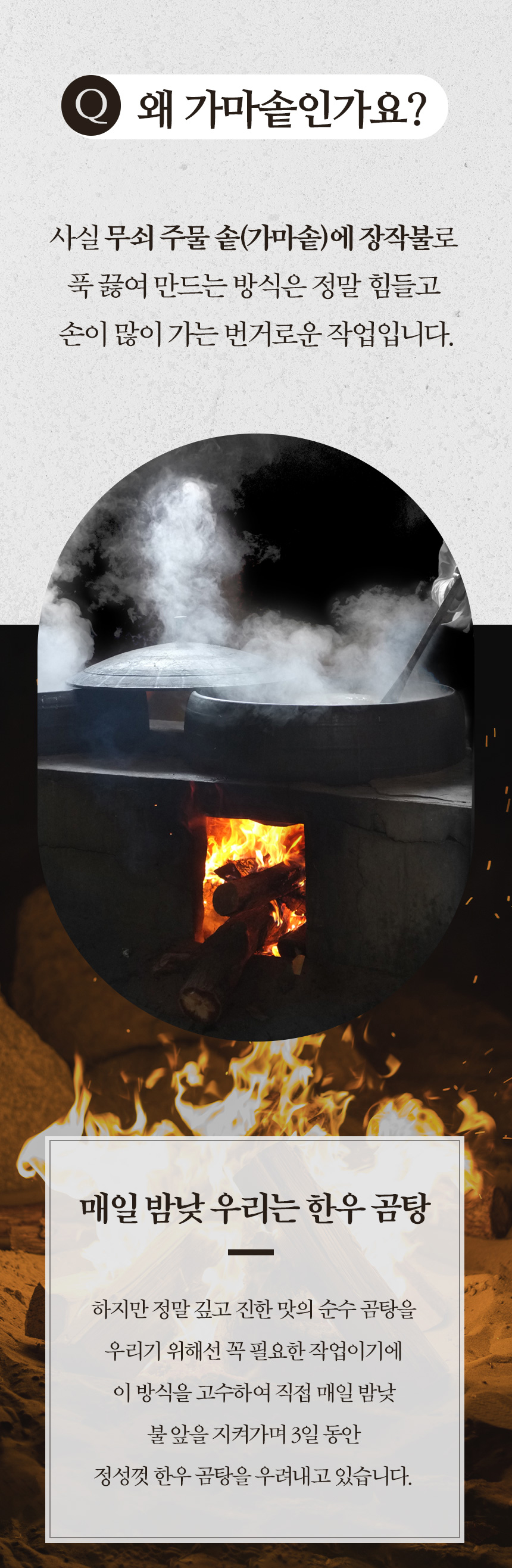 가마솥 방식의 곰탕은 많지만, 무쇠 가마솥에 장작불로 72시간 정성껏 끓이고 기름까지 말끔히 걷어낸 진짜 곰탕은 드물더라고요. 그 아쉬움에서 시작한 저희의 곰탕이 벌써 20년을 이어왔습니다. 담백하면서도 깊은 맛, 진정성 있는 한 그릇을 더 많은 분들과 나누고 싶은 마음으로 다시 와디즈를 찾았습니다.