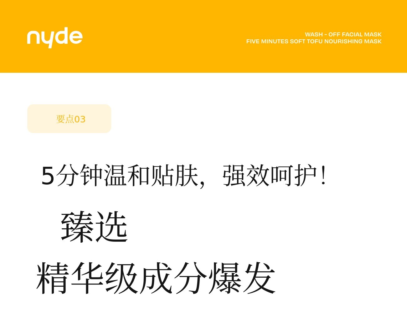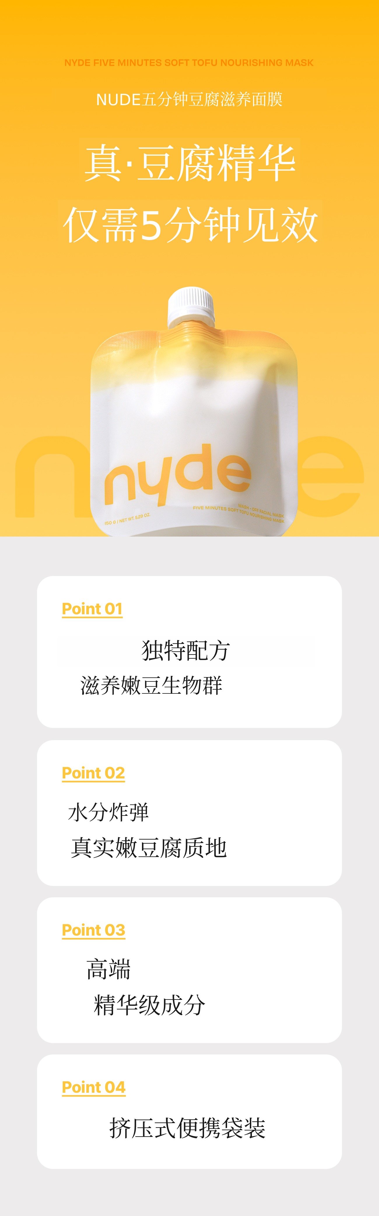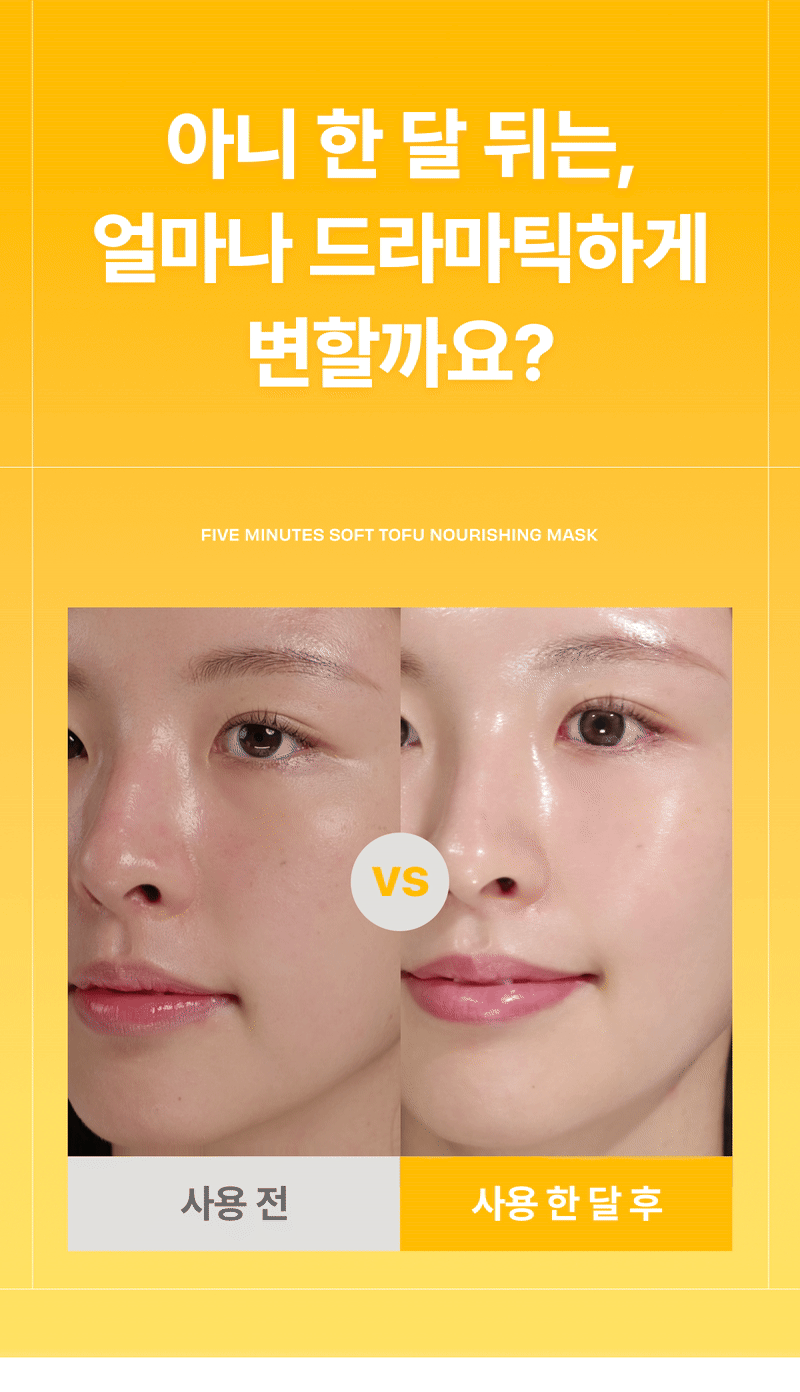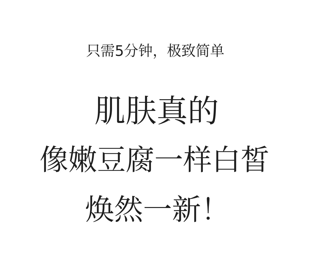 所以我思考了。能不能让每个人每天都能在5分钟内体验到肌肤本来透明美丽的变化?减少麻烦,节省时间,同时自然融入每日护理中的管理。NUDE 5分钟嫩豆腐面膜提出了全新的起点。缩短时间,最大化效果的真正居家护理,只需5分钟就能完成,不化妆也自信的透明肌肤。NUDE 5分钟嫩豆腐面膜,每天5分钟,肌肤透明度提升9%。