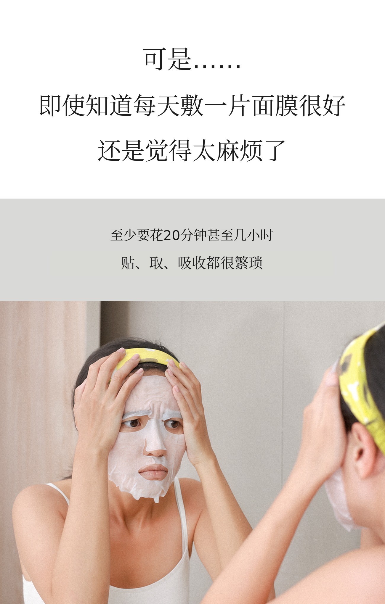 - Fiveminute系列扩展:针对多种肌肤问题(舒缓、弹力、美白等)的5分钟面膜系列,5分钟即可满足不同肌肤需求的定制解决方案