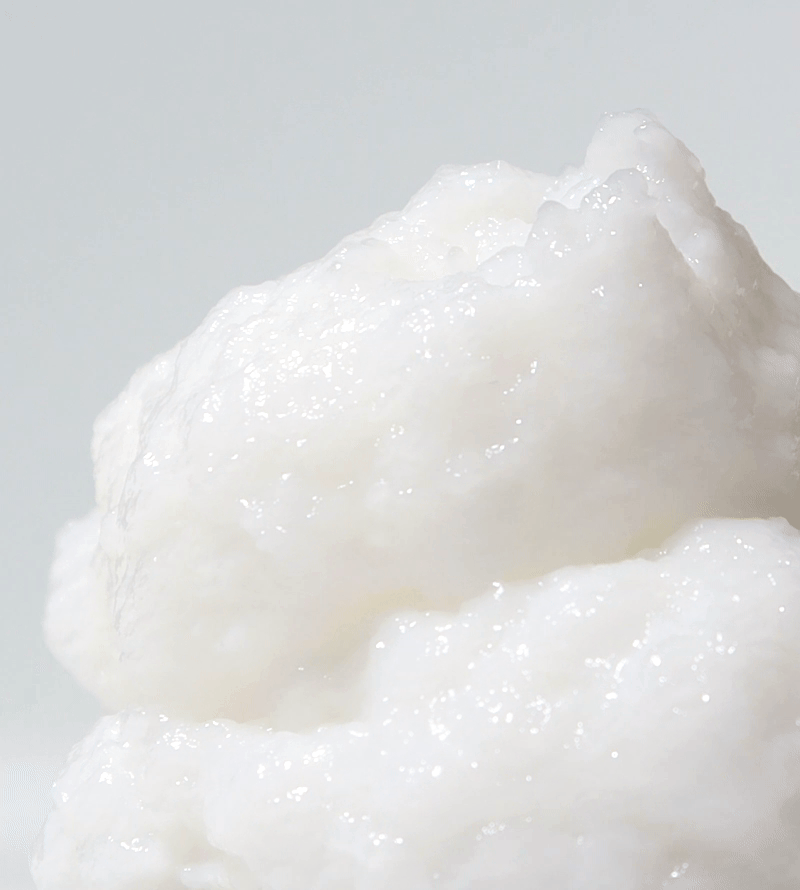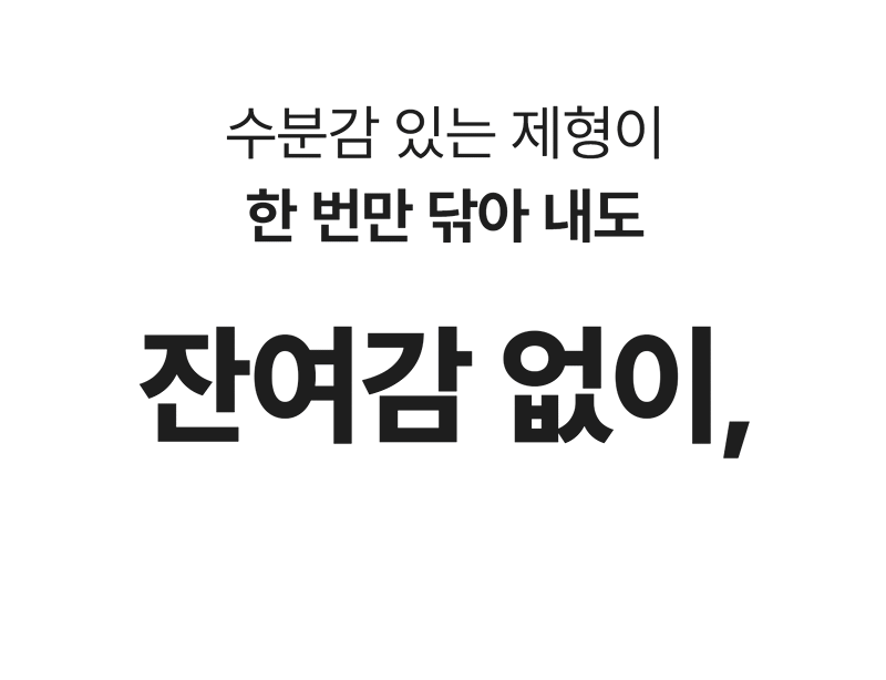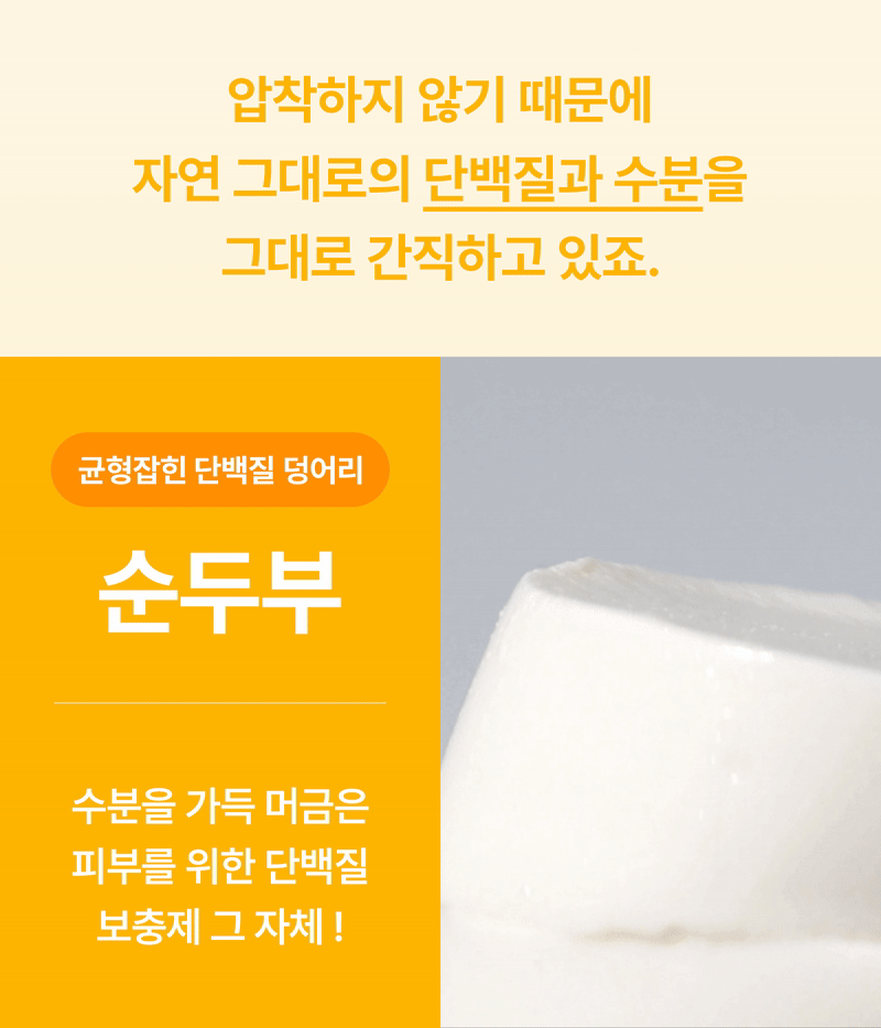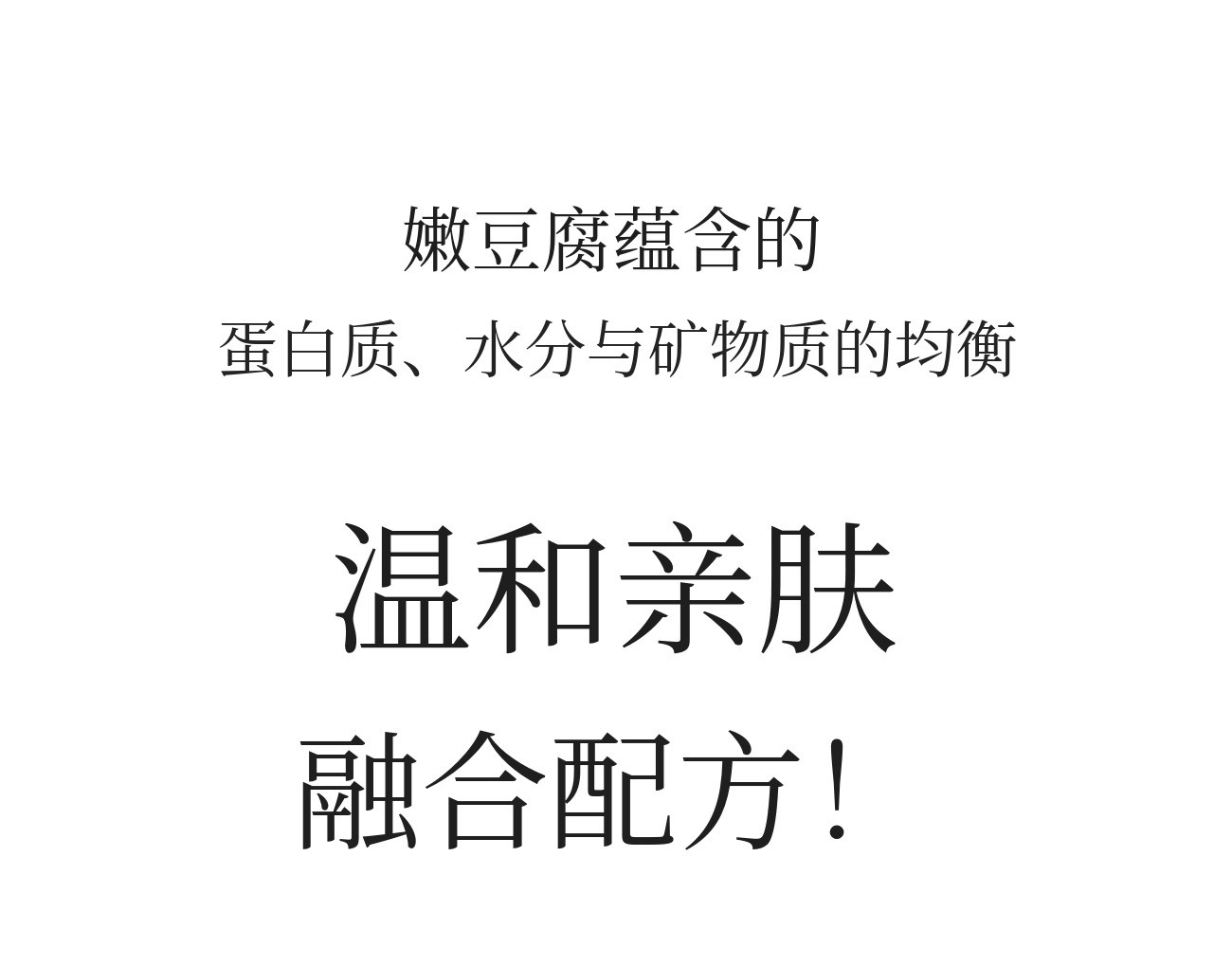 但在质地和效果上无法妥协。嫩豆腐质地的柔软感、水润的使用感、不粘腻且一次性擦拭干净的使用性,以及肉眼可见的明显效果。虽然收到了许多没有增稠剂的样品,但很快就会变干或过于浓稠,难以清洗。我们不仅在实验室,还直接联系原料公司和制造商,亲自奔走。即使经历了数十次失败,也坚持到底,为了找到不干燥、不浓稠、却又像真正嫩豆腐一样的质感和水润感。终于在一年后,经过6家制造商、50多个样品的测试,完成了能够柔滑延展、长时间保持湿润、清洗时能彻底去除的真正嫩豆腐质地。更详细的开发日志会通过最新消息一一分享!