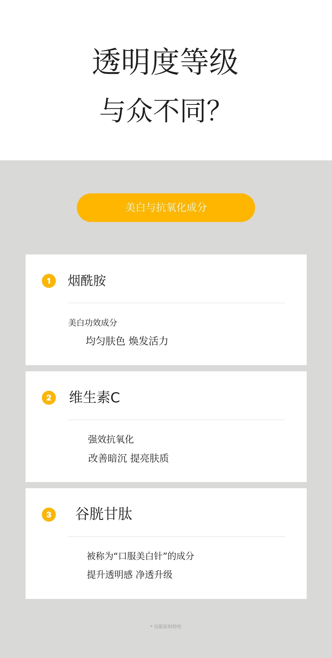 - 提升皮肤透明度、保湿、屏障改善效果的数据
