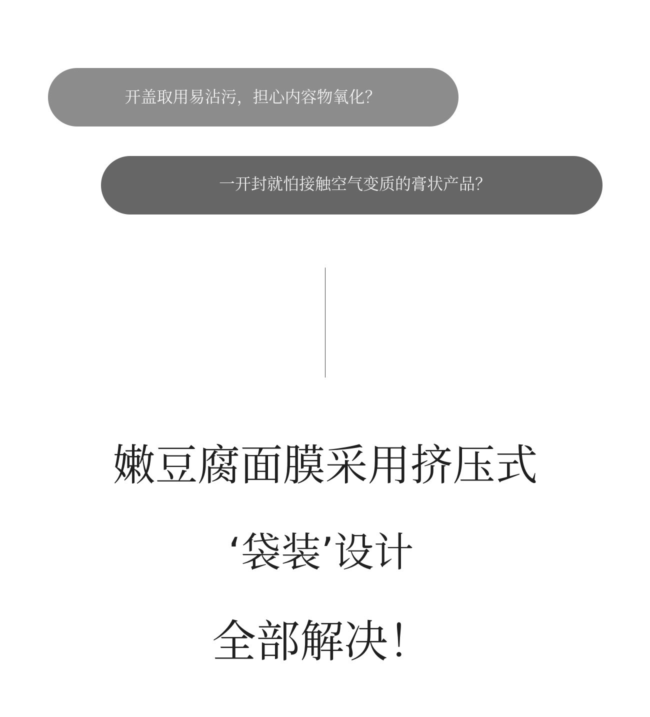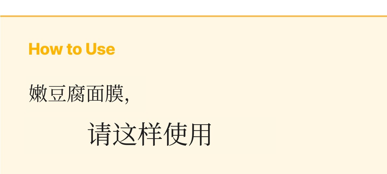 像嫩豆腐一样柔软的质地,随着时间推移能将水分带到皮肤表面。以往的洗净面膜时间一长反而会变干导致紧绷,但嫩豆腐面膜使用越久,皮肤越能感受到水润的保湿膜。因此无需担心干燥时要赶紧洗掉,即使敷超过5分钟也不会带走皮肤内部水分。 - 使用时机