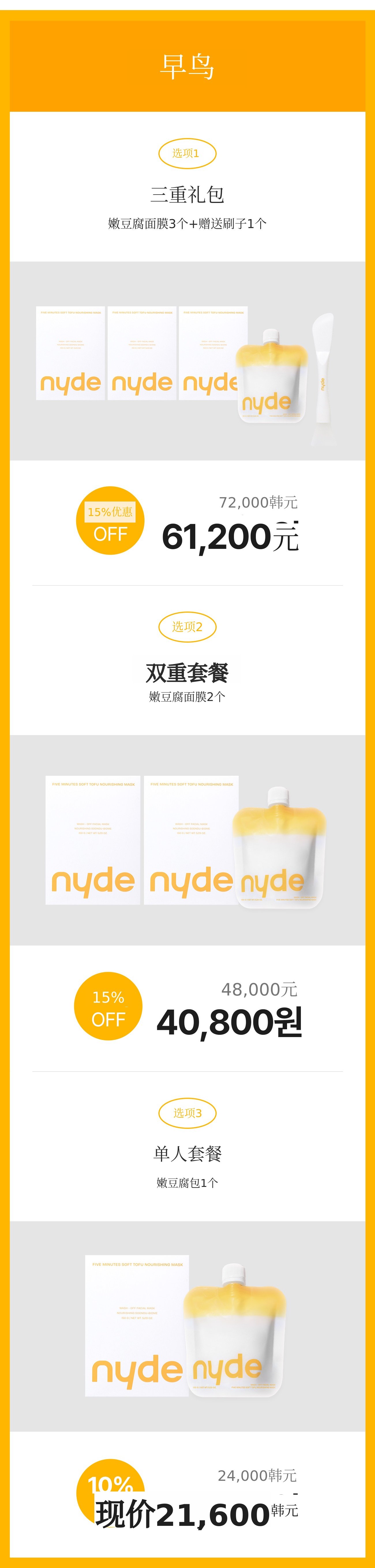 期待Wadiz支持者们能够对NYDE一年心血结晶的嫩豆腐面膜给予共鸣和宝贵反馈,因此首次在Wadiz亮相 : ) 请多多支持我们用心策划的嫩豆腐面膜!