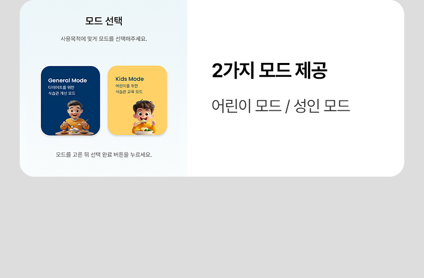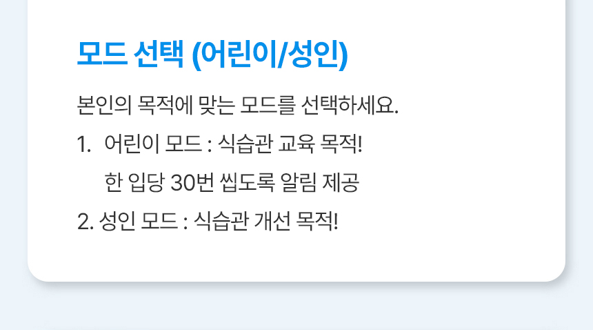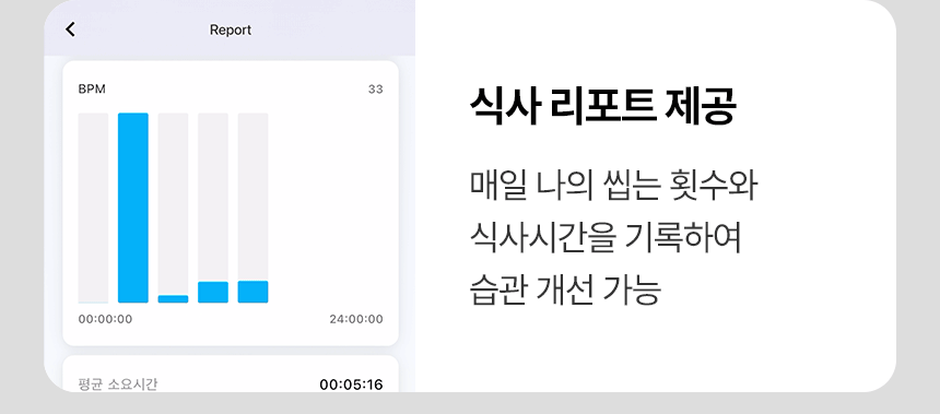A. 물론입니다. 성인 모드에서는 씹는 횟수와 속도를 기록하여 식습관 교정에 도움이 됩니다.
