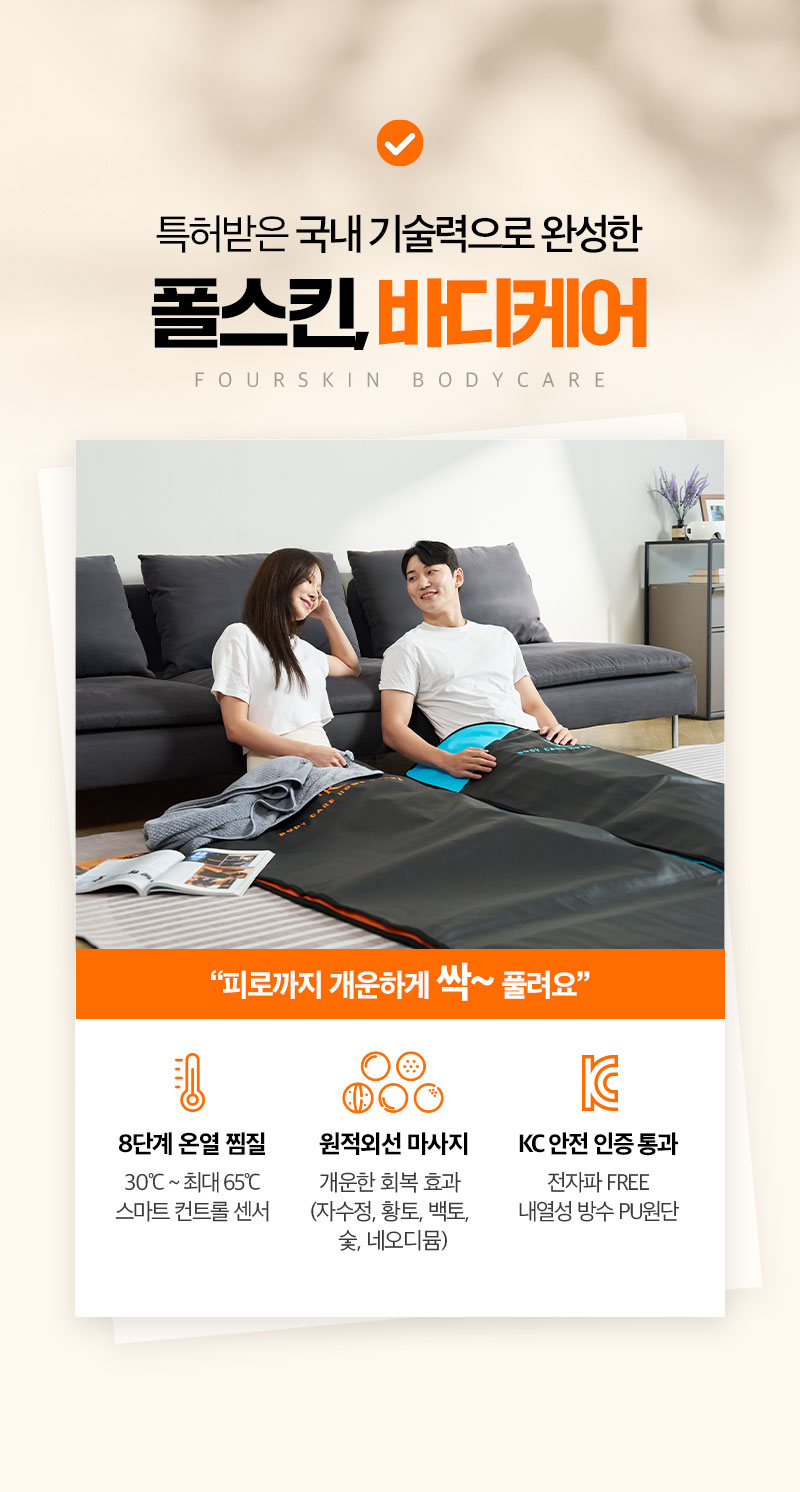 피부 속 깊숙이 침투하는 원적외선 에너지가 한층 더 개운한 마사지 효과 선사합니다.