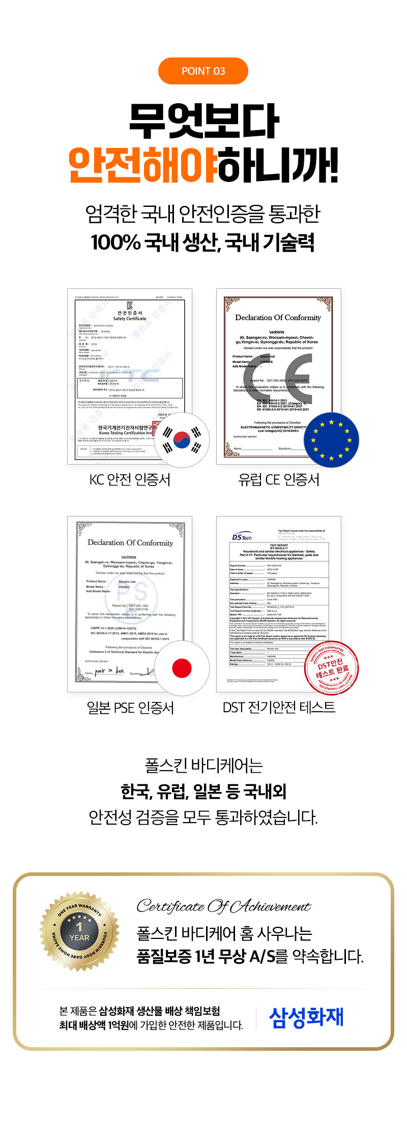 (※KC 안전 인증, 유럽CE, 일본 PSE, DST 전기안전 인증 완료)