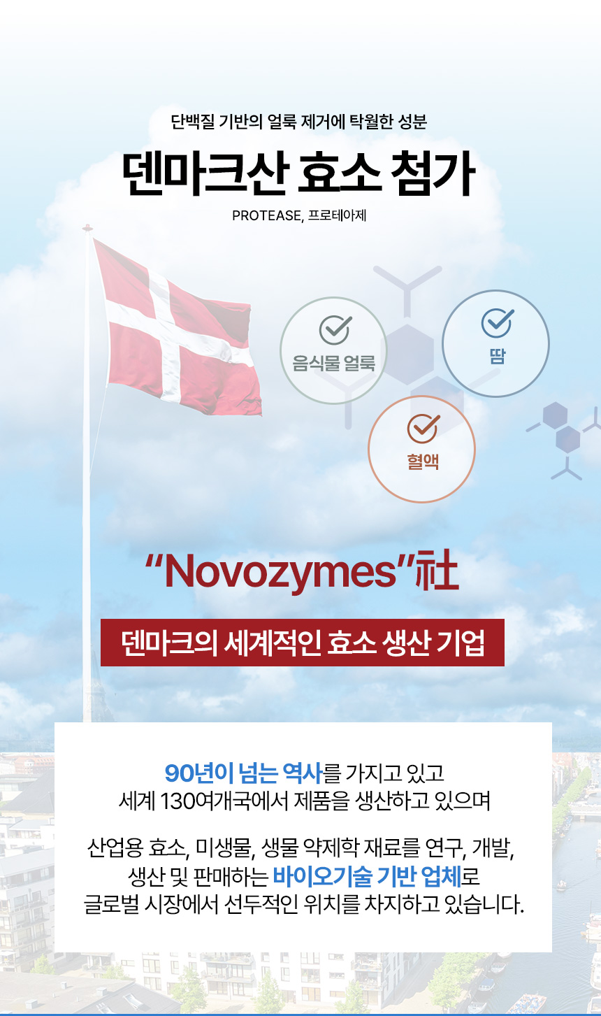 하지만 일반 티슈로는 음식물, 혈액, 땀 등 단백질 기반의 얼룩을 효과적으로 제거하기 어렵다는 점을 발견했습니다. 이를 해결하기 위해 저희는 단백질 분해 효소를 티슈에 첨가하여, 단백질 얼룩을 손쉽게 분해할 수 있도록 했습니다.