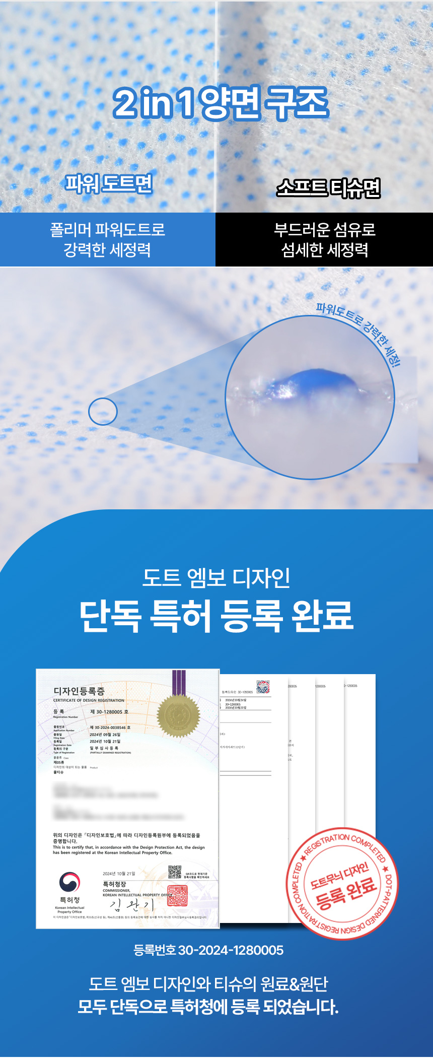 이렇게 탄생한 파워도트 매직티슈는 일상생활에서 마주치는 다양한 얼룩을 간편하게 제거할 수 있는 혁신적인 제품입니다. 저희는 이 프로젝트를 통해 많은 사람들의 일상에 편의를 더하고, 보다 청결한 환경을 만드는 데 기여하고자 합니다.