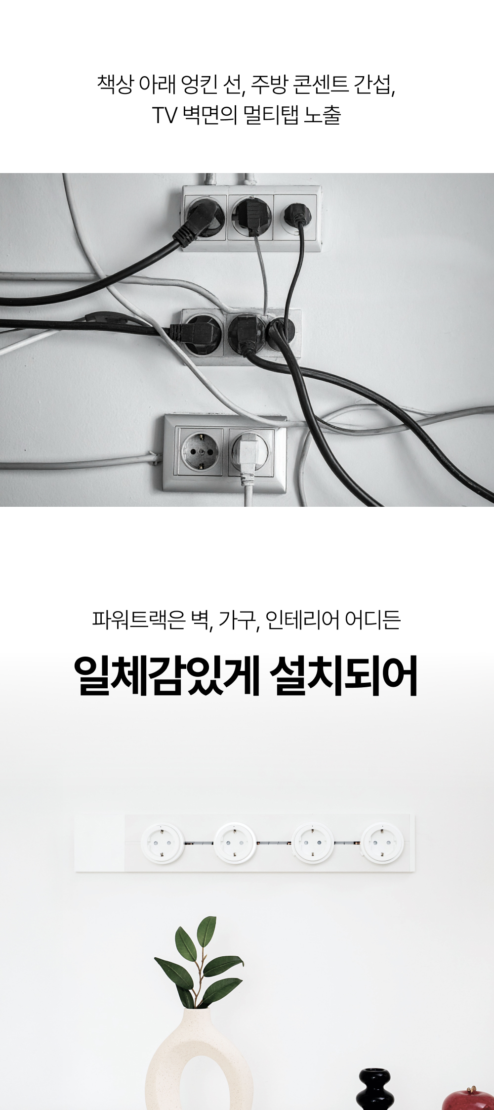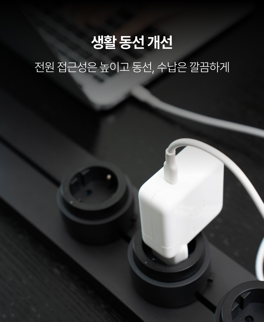 정돈된 미관: 전선 노출을 줄이고 라인만 남깁니다.