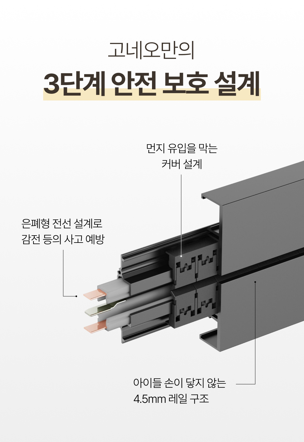안전 잠금·밀폐형 레일 구조를 기본으로 갖추었습니다.