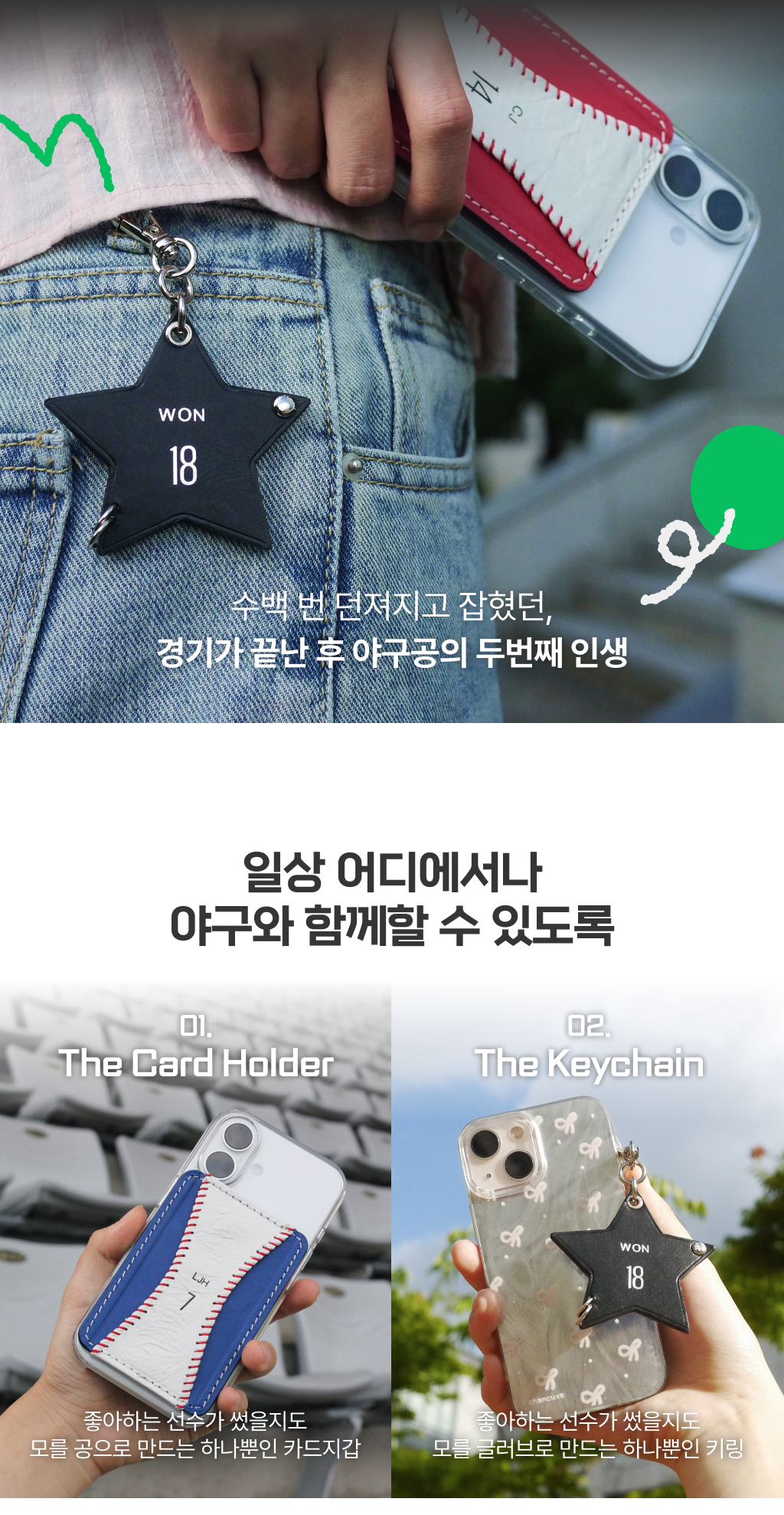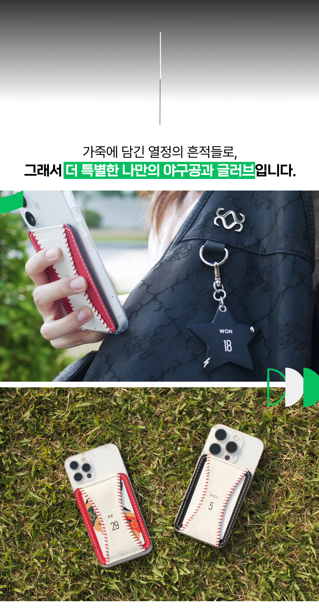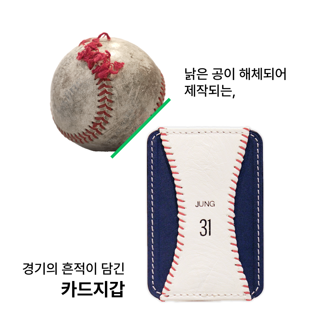 这款产品将棒球场实际使用过的棒球皮革进行升级再造,制成卡片钱包,并搭配采用棒球手套制作的限量版钥匙扣,完美融合了球迷情怀与实用功能。仅在Wadiz平台以特别套装形式发售。