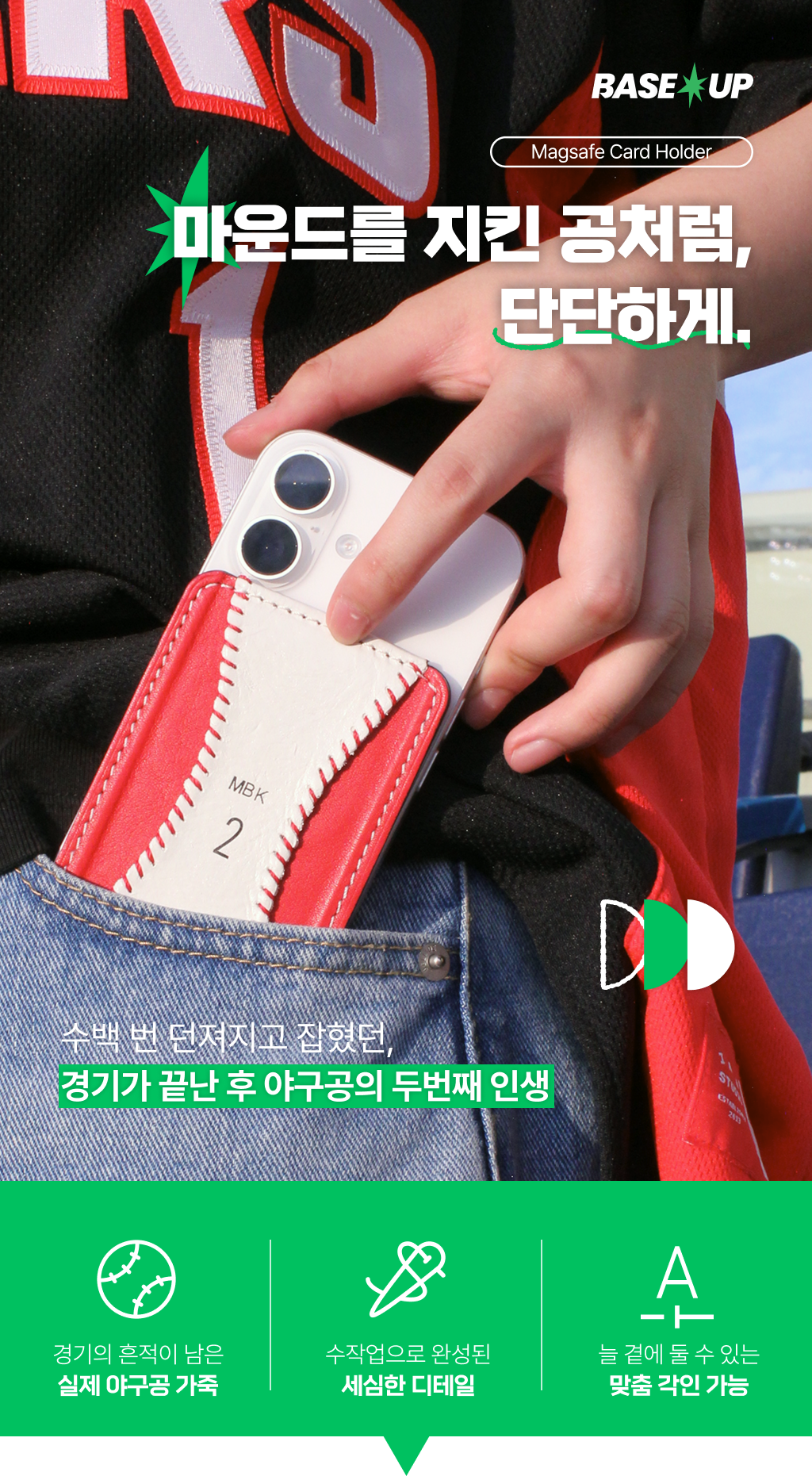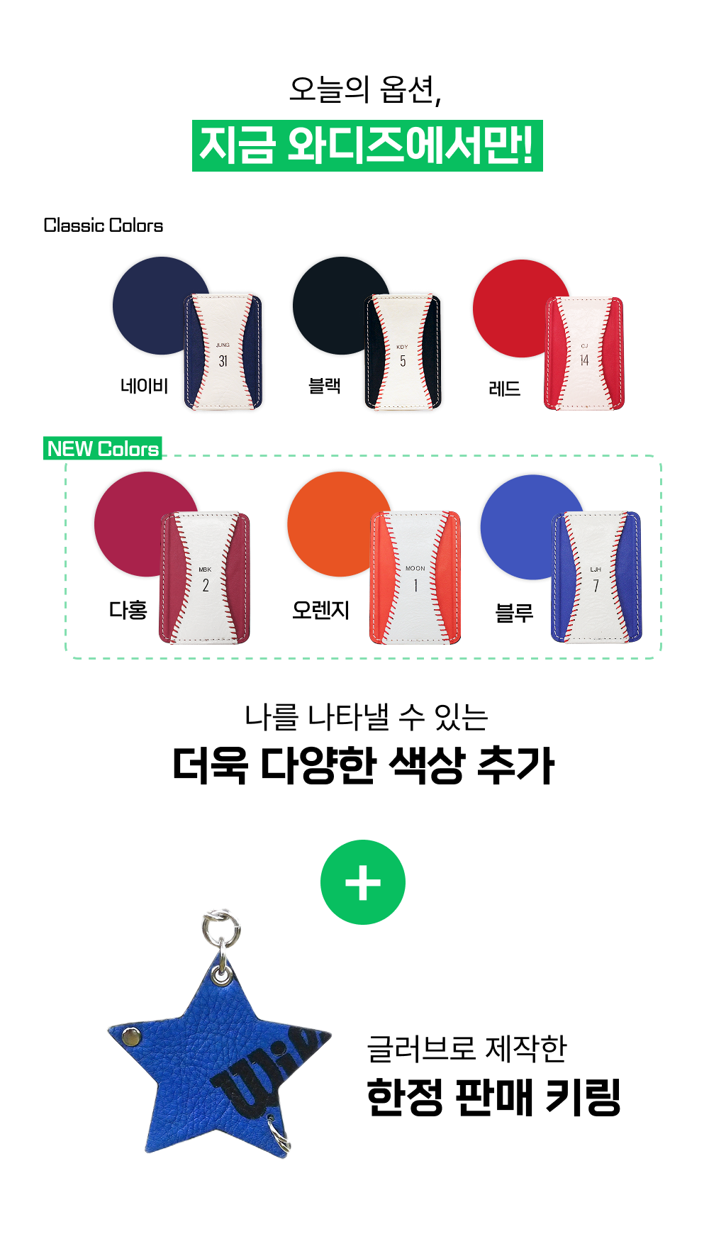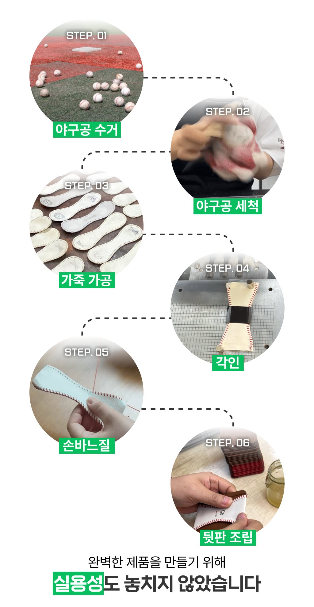 这款产品将棒球场实际使用过的棒球皮革进行升级再造,制成卡片钱包,并搭配采用棒球手套制作的限量版钥匙扣,完美融合了球迷情怀与实用功能。仅在Wadiz平台以特别套装形式发售。