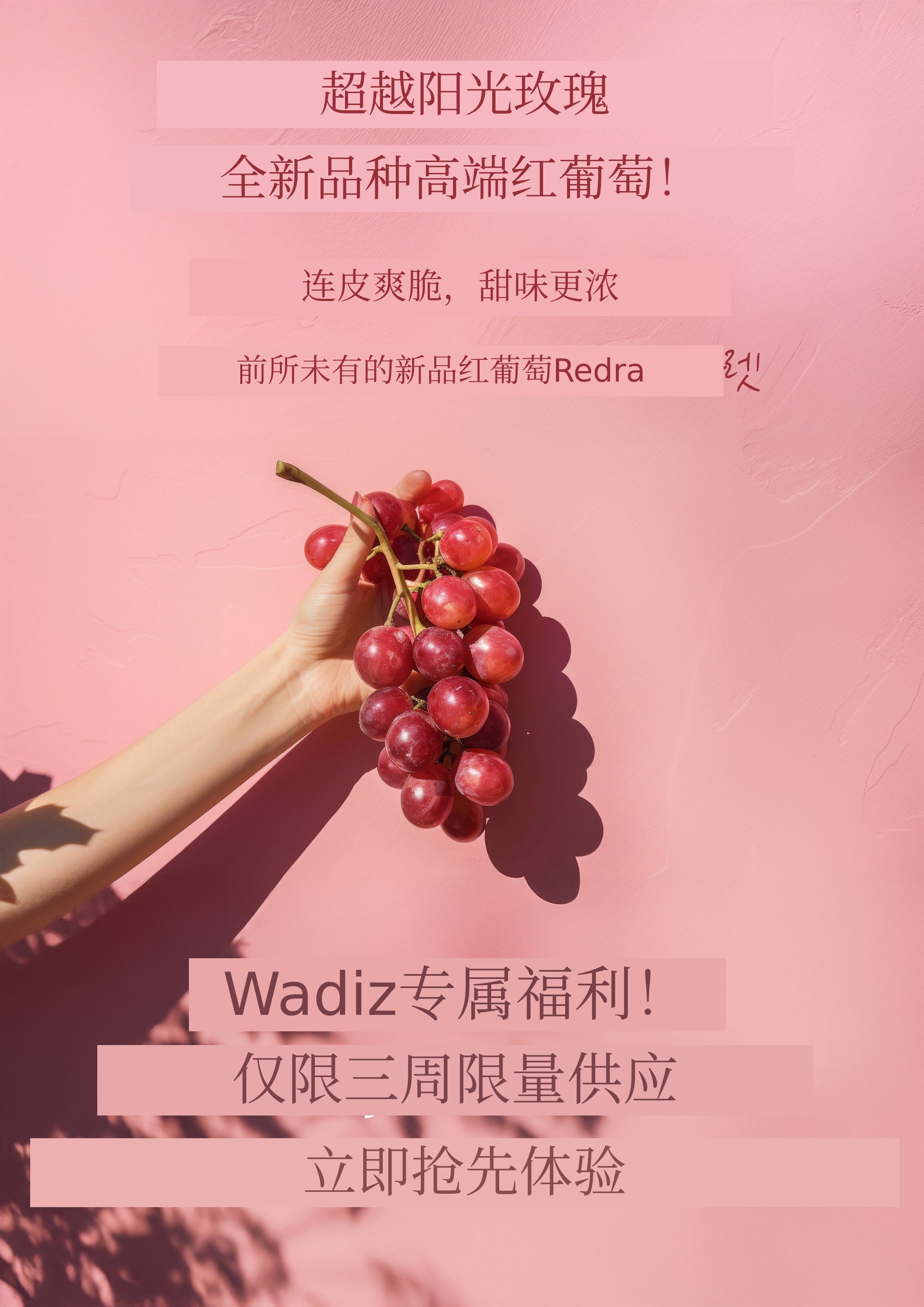 像阳光玫瑰一样可以连皮吃且甜美柔软的红葡萄 为目标,