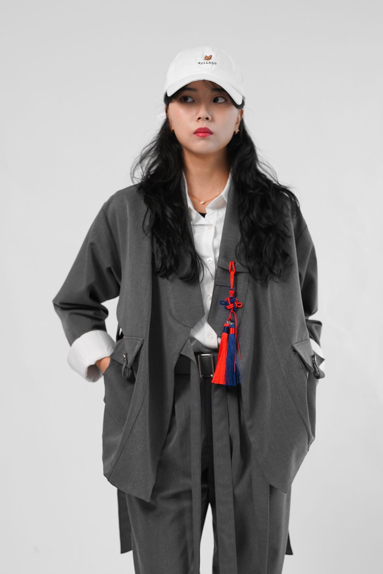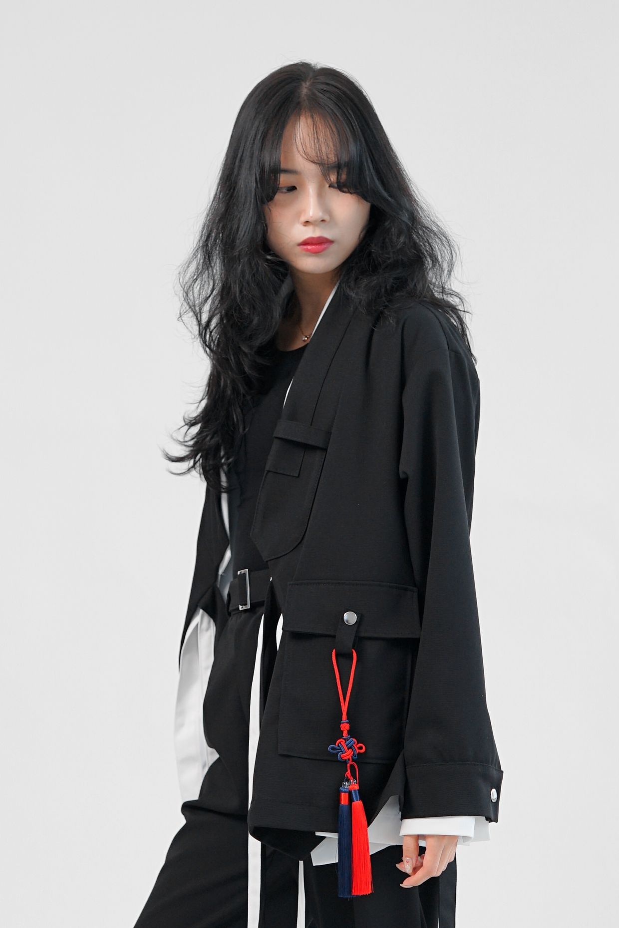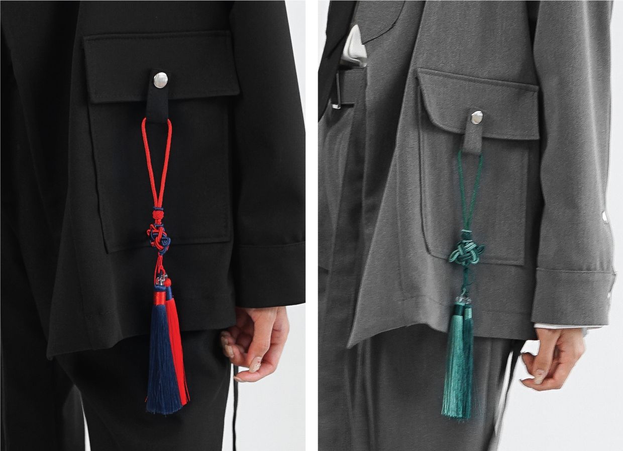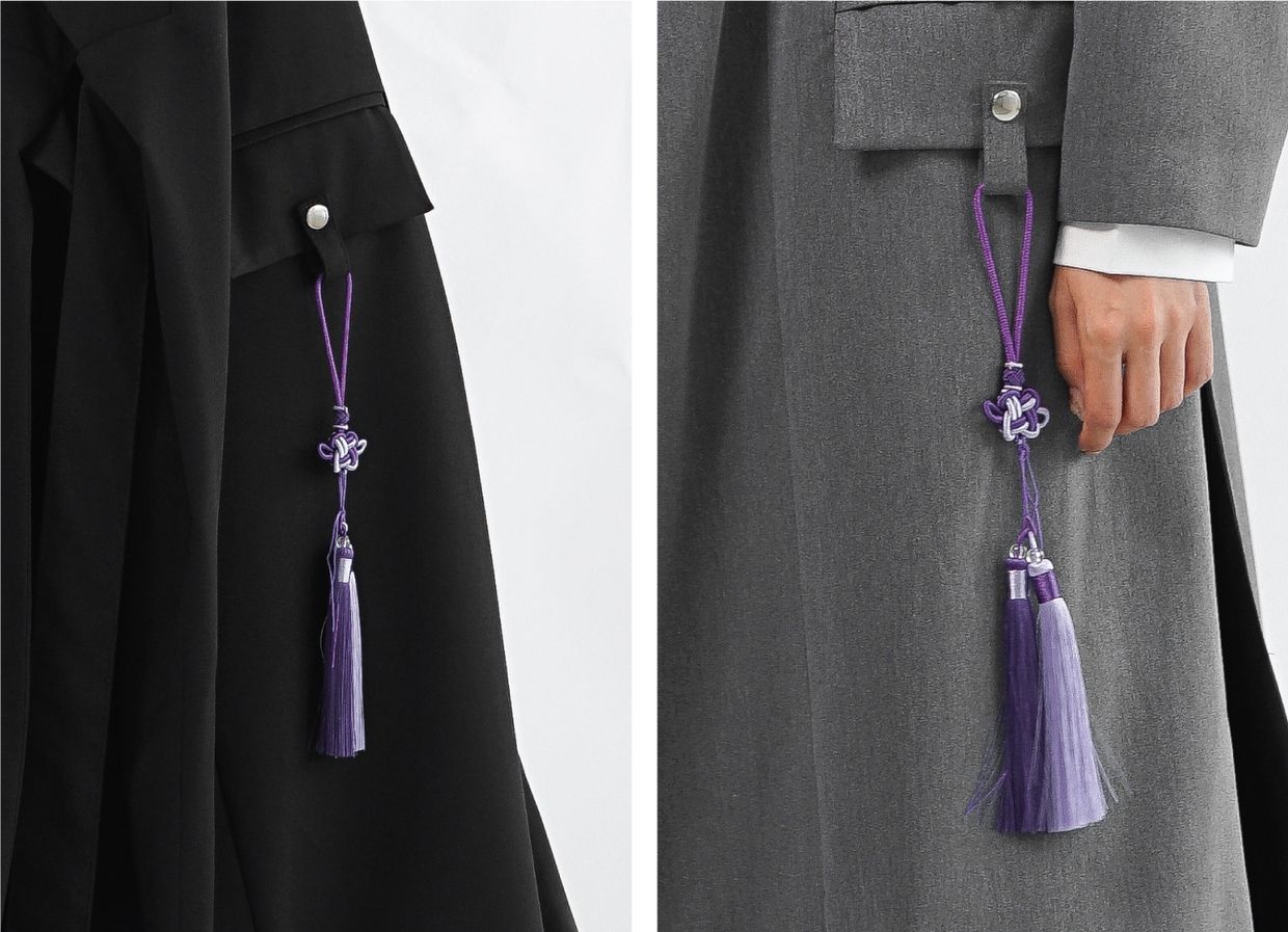 주머니 부분에서도 노리개를 걸어 코디에 완성인 악세사리를 표현 할 수 있습니다.