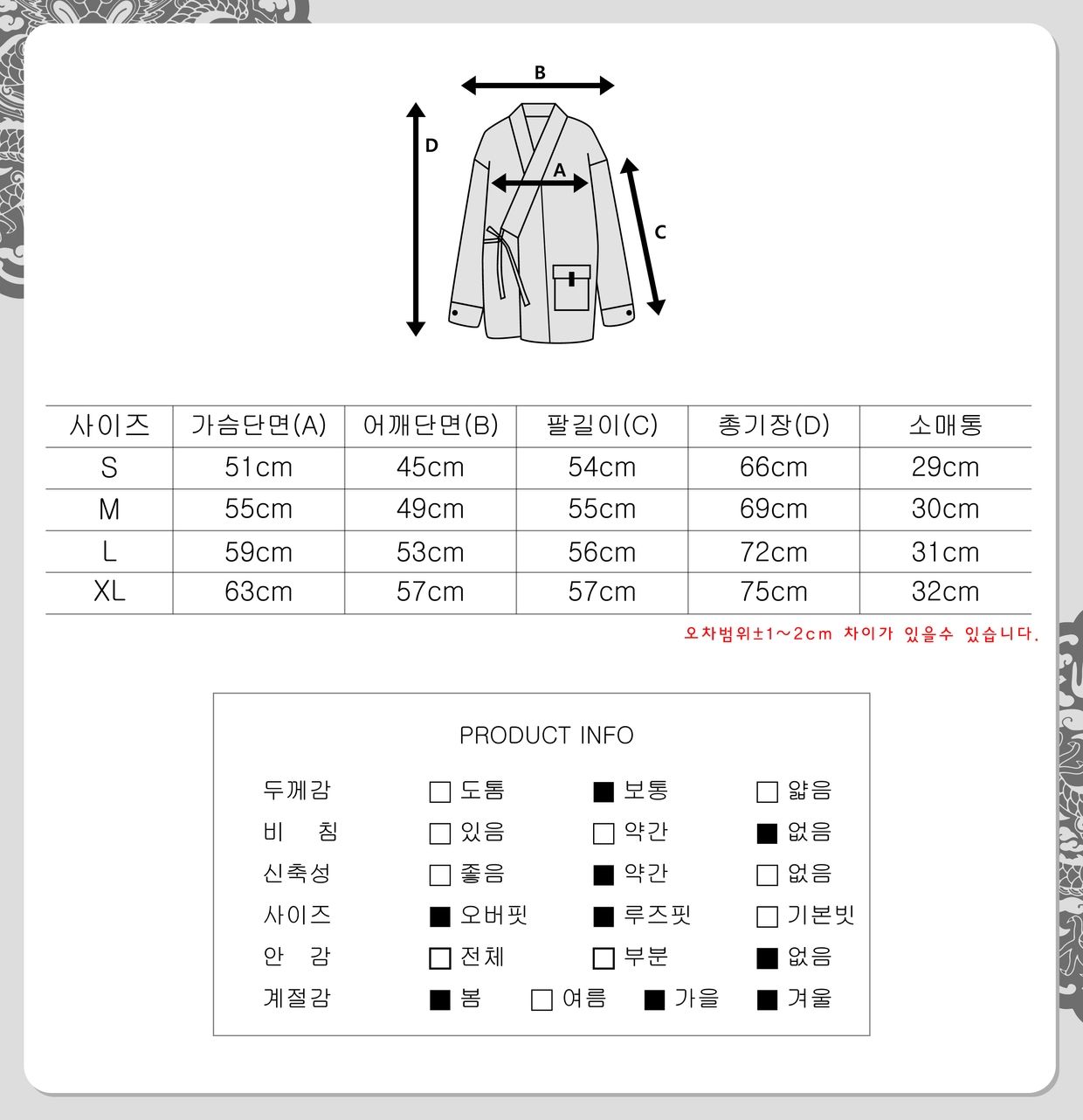 : 오버 루즈핏의 장저고리 스타일입니다.