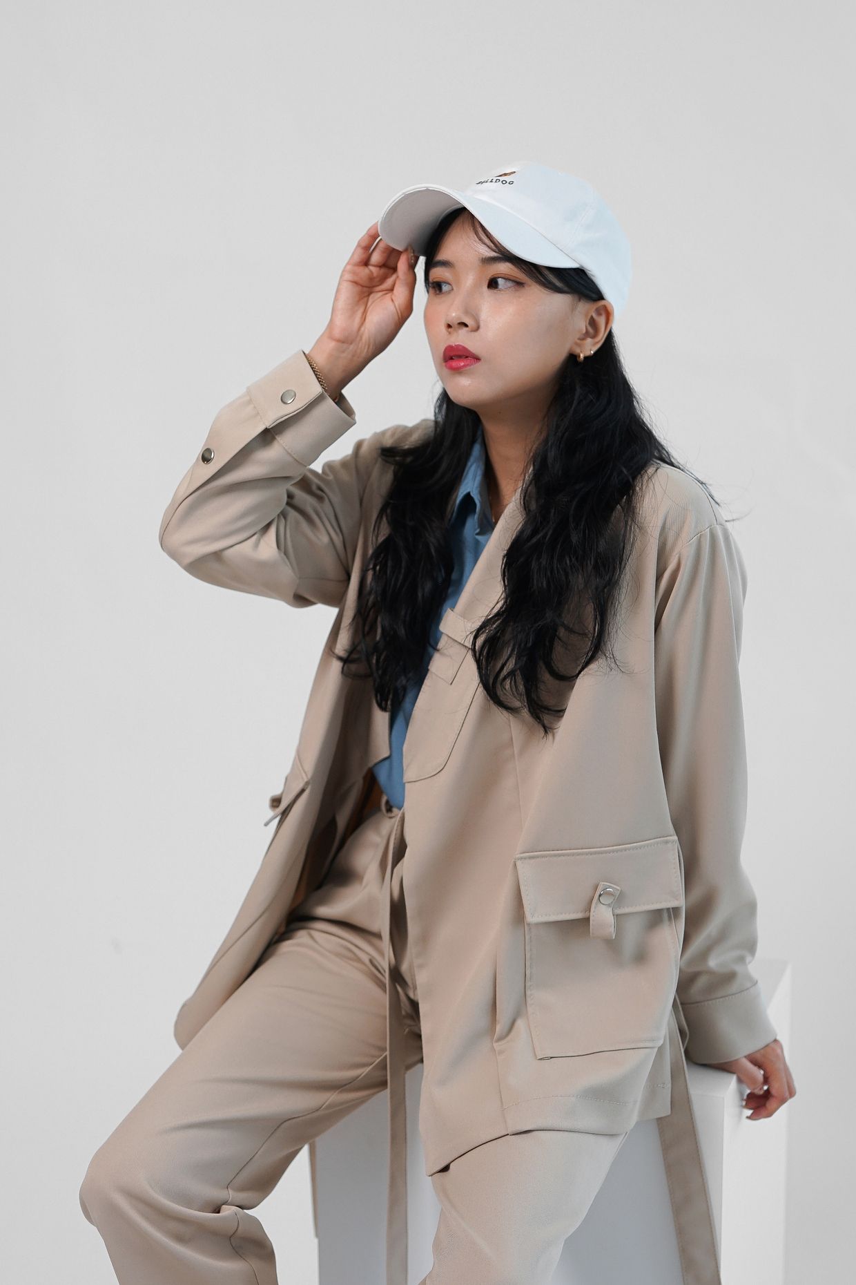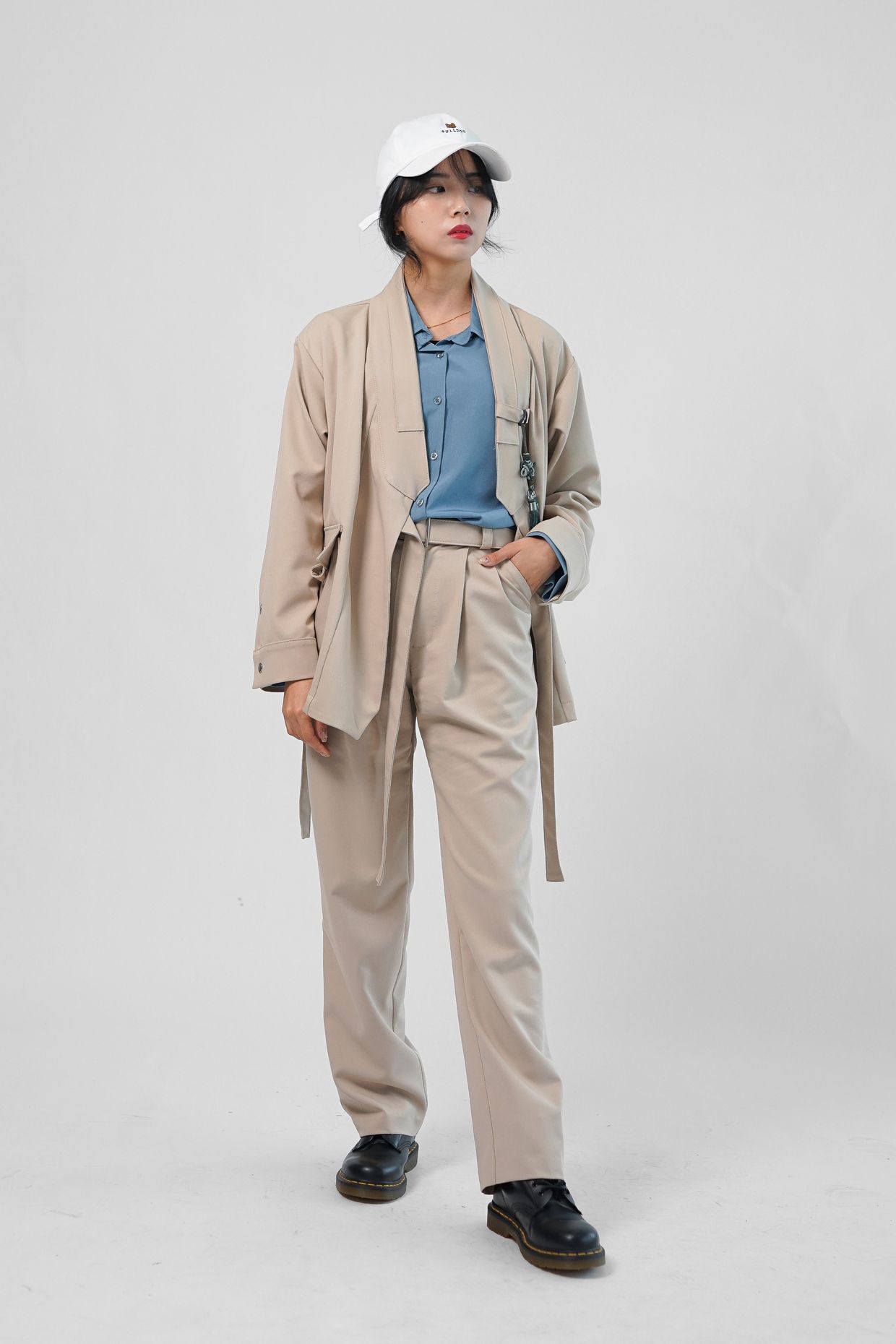 가을 겨울에 많이 입는 블루계열 셔츠와 가장 잘 어울리는 색감의 베이지 입니다.