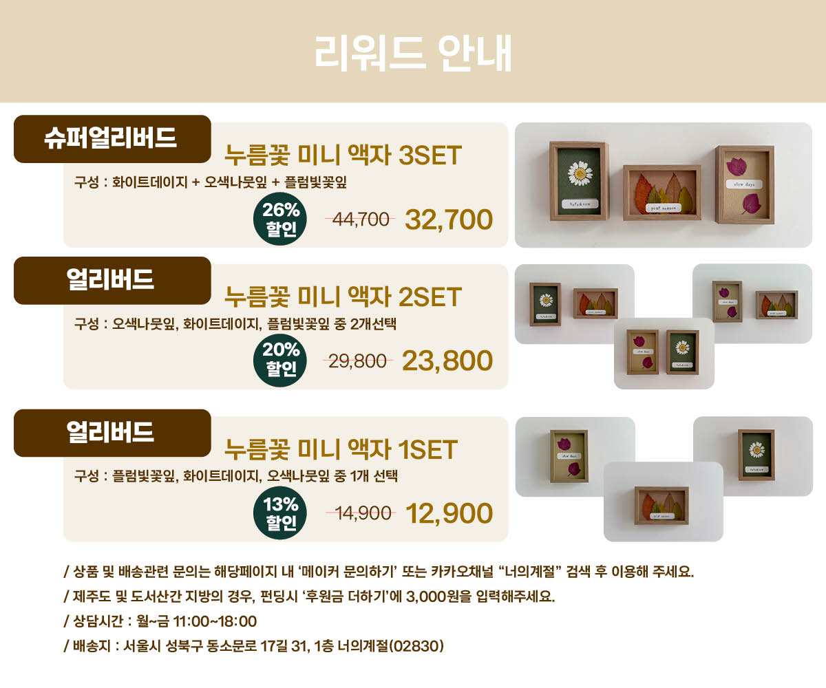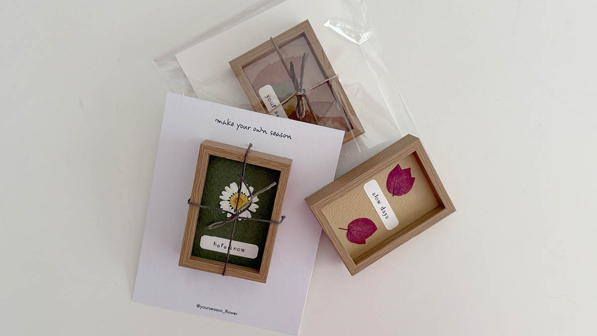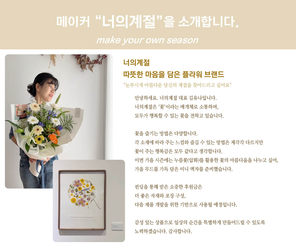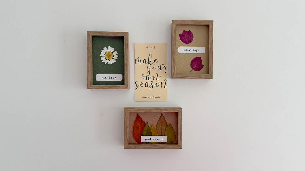 가을이 주는 따뜻함, 조금 더 오래 간직할 수 있게 '너의계절'의 누름꽃 미니 액자에 가득 담았습니다.