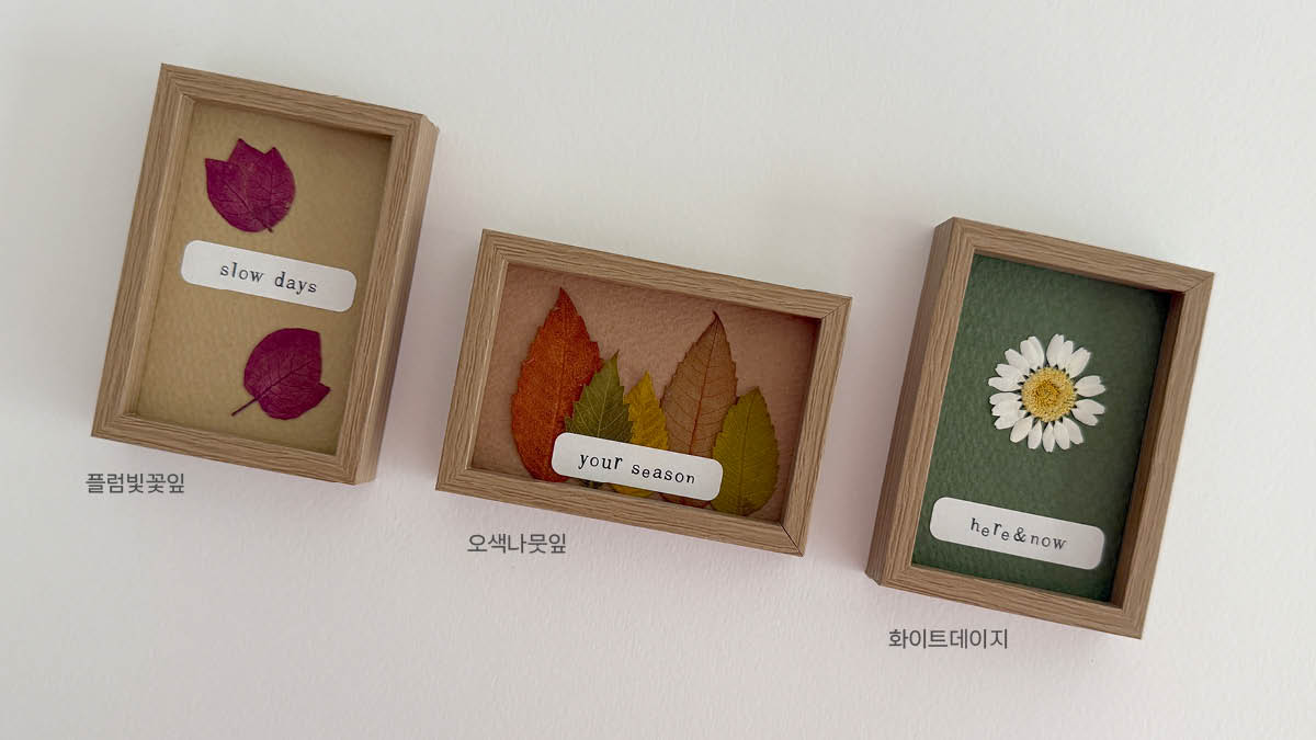 어디에 두어도 부담스럽지 않은 누름꽃 미니 액자로 가을의 계절감을 마음껏 느껴보세요.