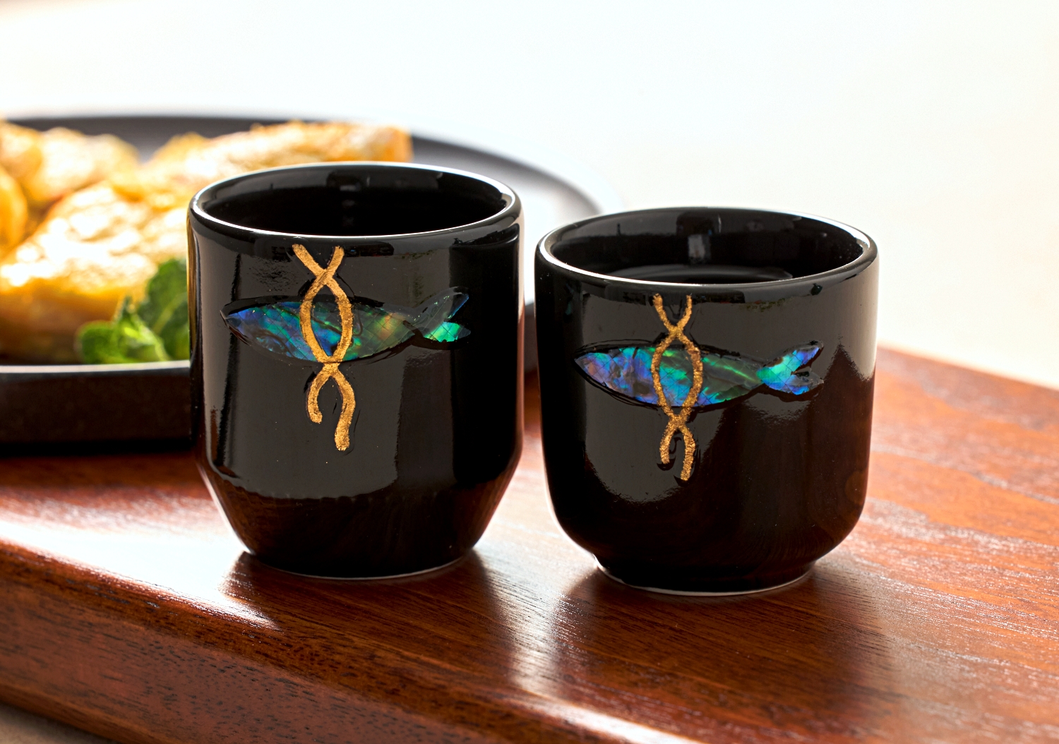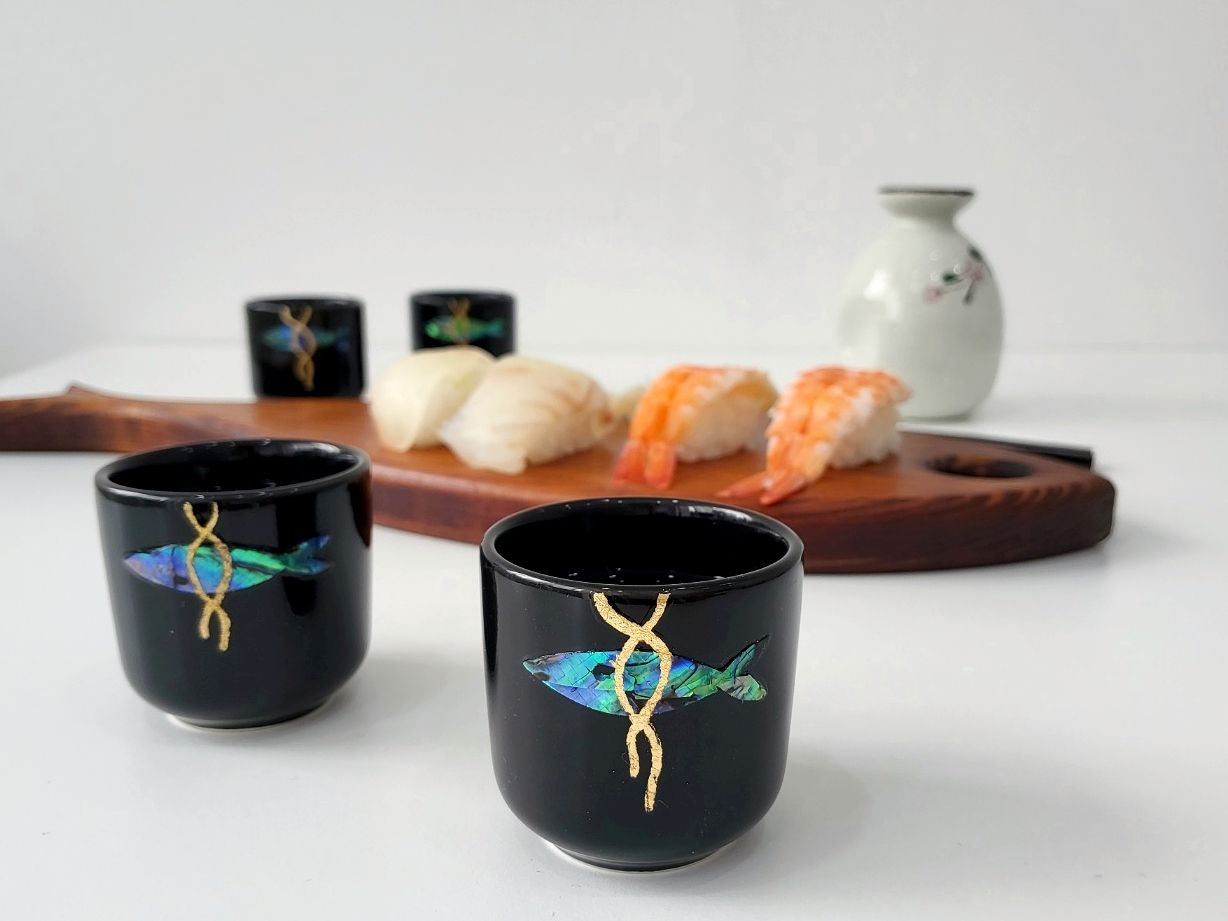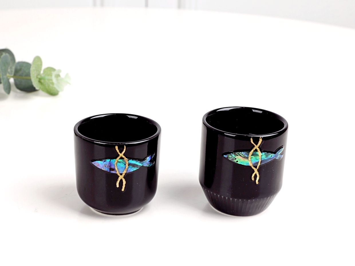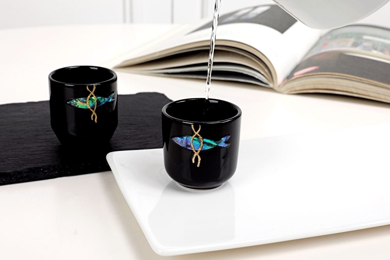 我们的螺钿酒杯不仅仅是‘单纯漂亮的酒杯’。EVEJE的螺钿酒杯会在你身边,成为阻挡厄运、守护福气的坚强守护神,这是我们的期望。因此,闪耀的螺钿与精致的金箔丝绸线中融入了‘明太鱼驱邪’的元素,精心设计而成