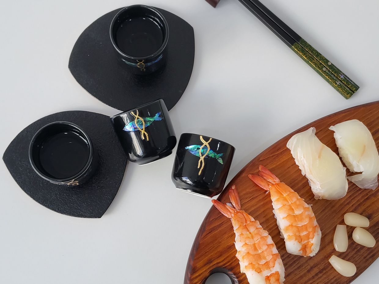 并希望您能与珍贵的人一起,享受一杯清酒或温馨时光,‘如同一件完整的艺术品’ 为了让您能如此享受,我们决定将与螺钿酒杯完美搭配、提升格调的螺钿筷子一同呈现。