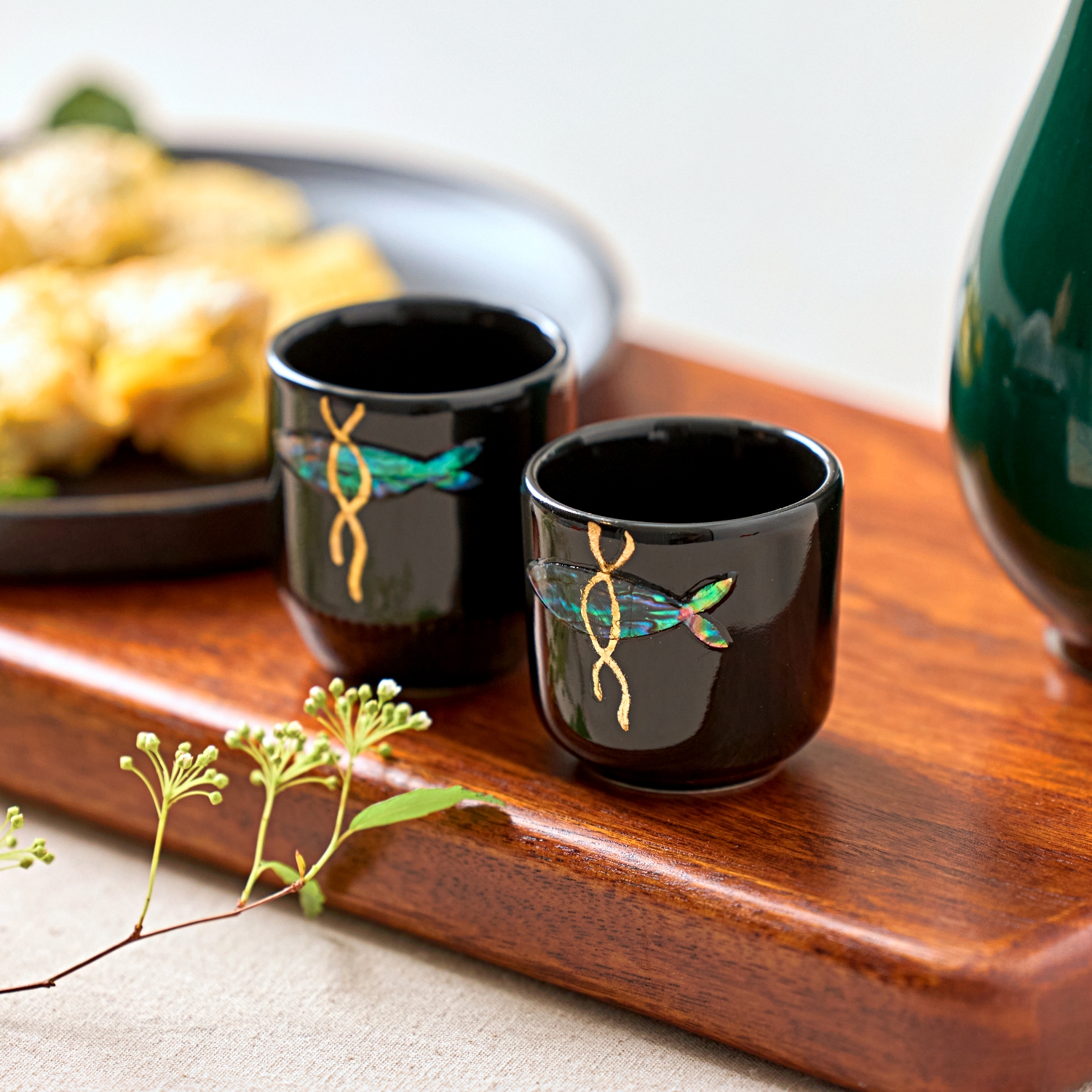 自古以来,明太鱼因其大嘴能吞噬负能量、不闭眼的特性有着监视厄运的吉祥寓意。再加上,祈愿家人健康与财运的金色丝绸线的心意,即使是一只酒杯,也满载着美好的愿望。