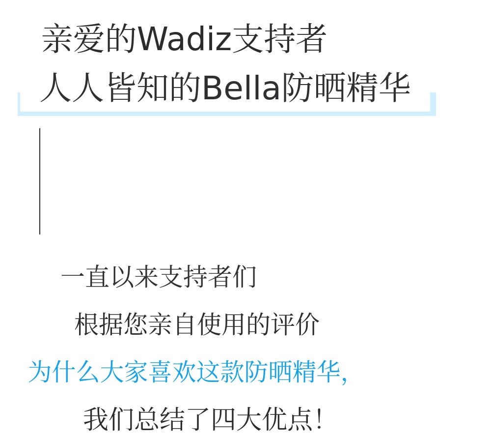首次以防晒精华与大家见面,在Wadiz连续5年受到大家的厚爱和支持,能够持续展示我们的产品,真的很幸福。 通过预售,倾听支持者们的意见,当大家说“果然值得信赖的Bella”时,我觉得做化妆品真是做对了。