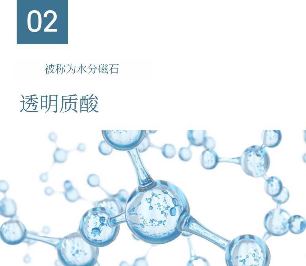 透明质酸是我们皮肤中自然存在的保湿因子之一,能够吸引水分,使皮肤保持湿润。然而,随着年龄增长,皮肤中的透明质酸含量减少,因此,干燥感加重。所以我们会通过涂抹化妆品来补充缺乏的透明质酸,为皮肤补充水分。能够吸引自身体积1000倍水分的储水库就是透明质酸,虽然听过很多次可能觉得腻了,但它确实是必需的成分。