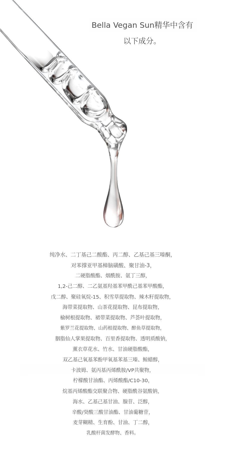 请体验顺滑易涂的Bella Vegan水感防晒精华。
