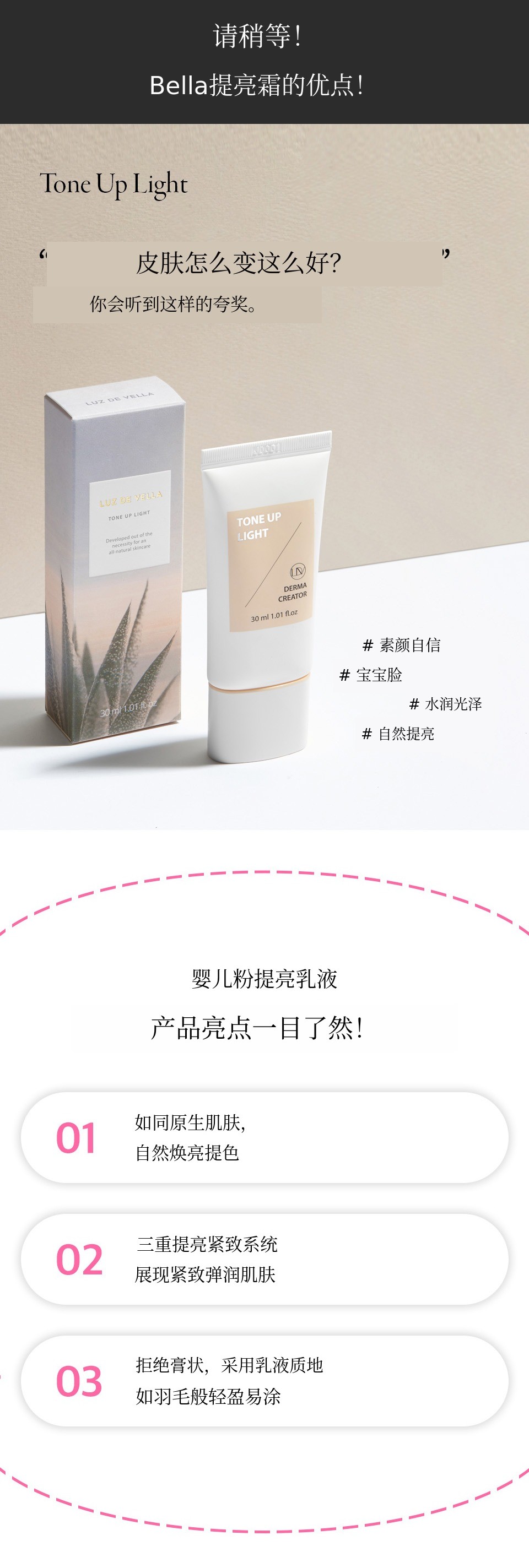 ‘有没有能用轻盈肤感一次解决的产品’ 带着这样的烦恼,以彻底的消费者心态,严格关注每一种成分,不只是追求简单方便,而是注重效果 的产品。