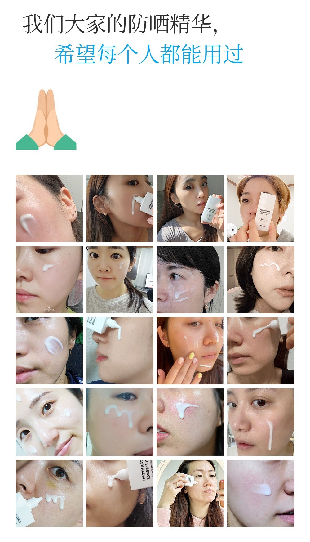 总是涂完防晒霜后,您是不是也有立刻去洗手间洗手的经历? 真的在那种状态下,什么都不想碰的感觉。总是在思考,难道一定要留下这种黏腻和残留感吗? 基于这样的思考开发了产品,并通过坚持和努力完成了。使用Bella Vegan水感防晒精华后,真的感受到轻盈清爽的涂抹感 让我很惊讶。涂抹感真的很重要。