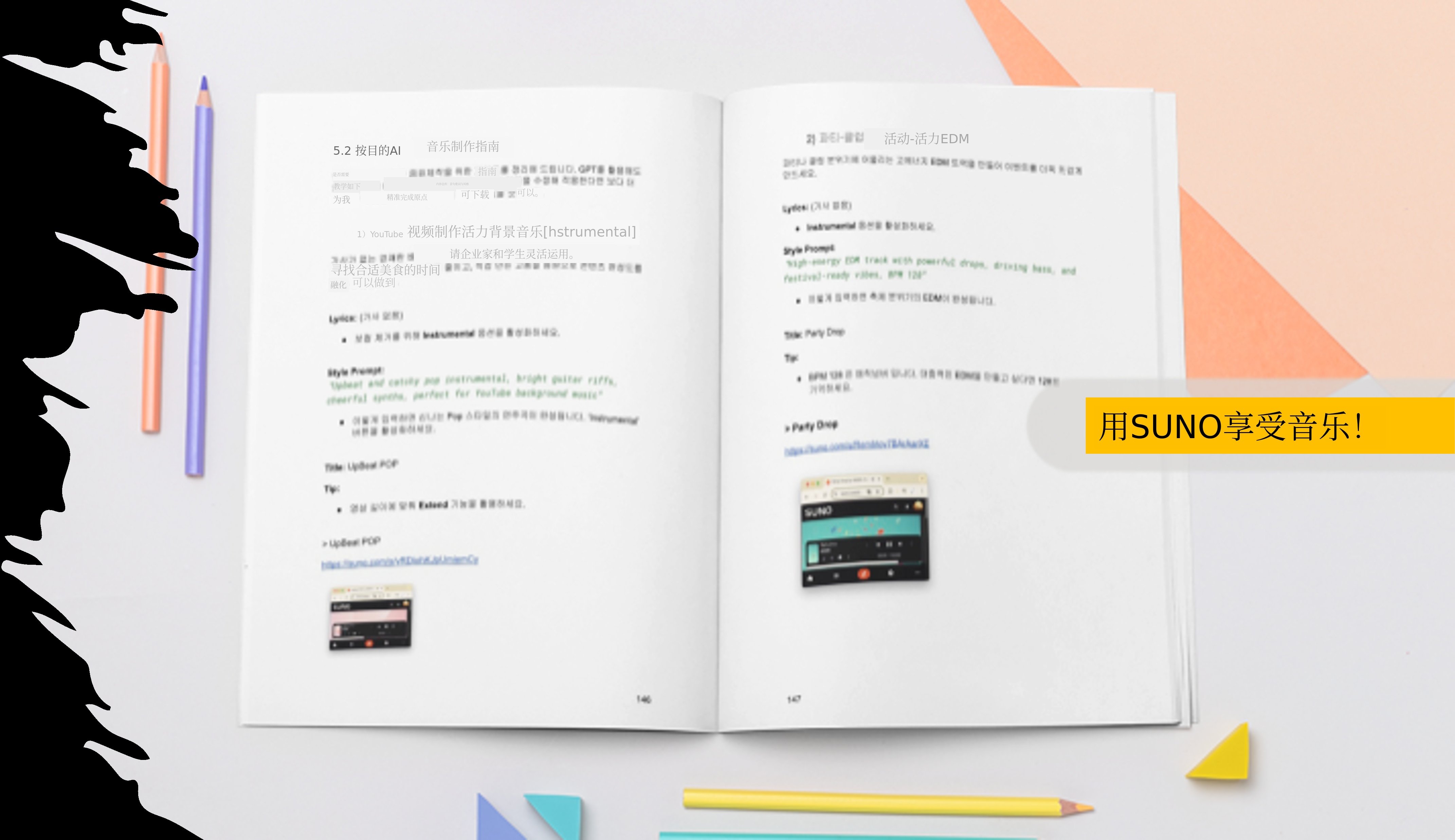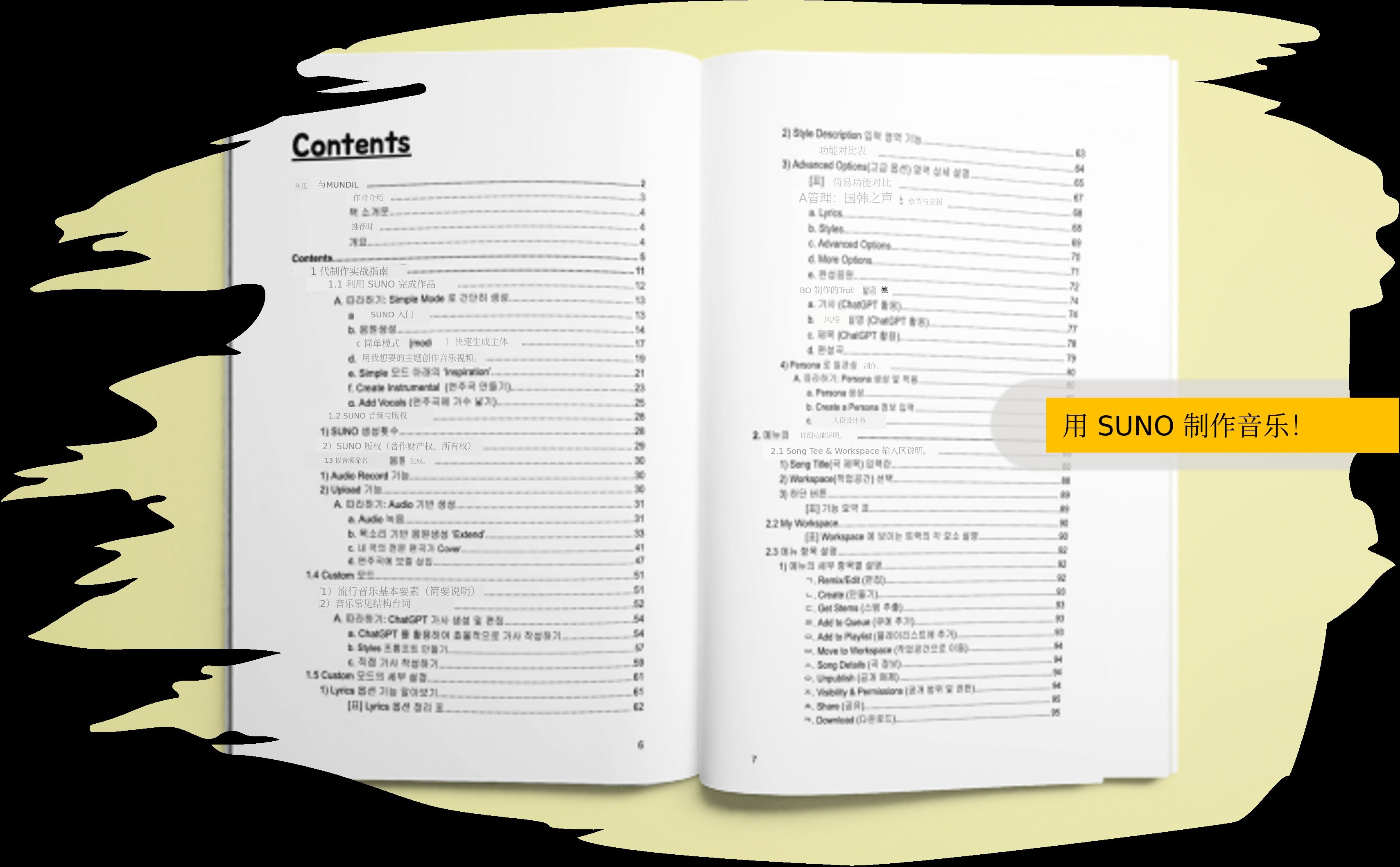 - 现在是一个利用AI制作音源,任何人都可以创作自己想要的音乐的时代。然而,仍有许多人甚至不知道SUNO的存在,即使知道,也有很多人只会简单生成,却不了解如何真正制作自己需要、自己想要的音乐。
