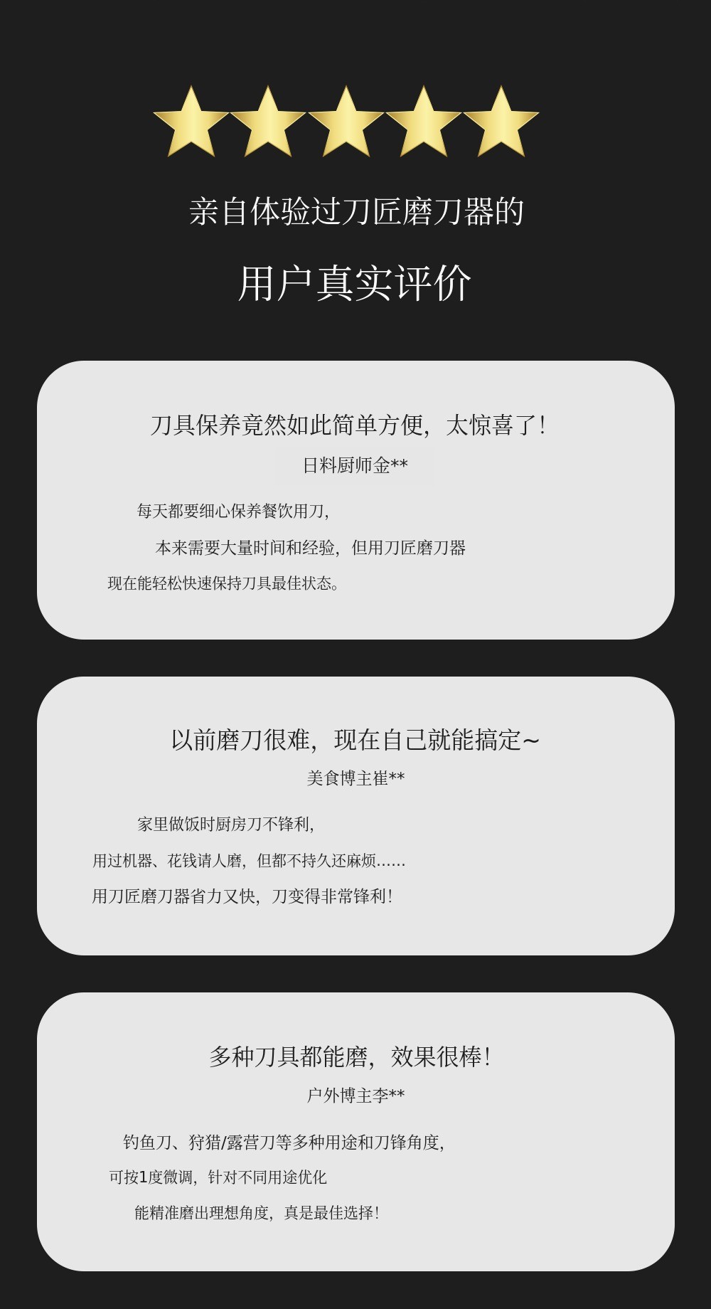 1. 🔪 高端卡尔瑟姆磨刀器 - 精准角度调节,多种磨石恢复刀刃锋利 2. ⚙️ 易用且安全 - 人体工学设计,初学者也能轻松使用 3. 💸 优惠与赠品 - 超级早鸟33%至39%折扣,尊享版赠送风扇