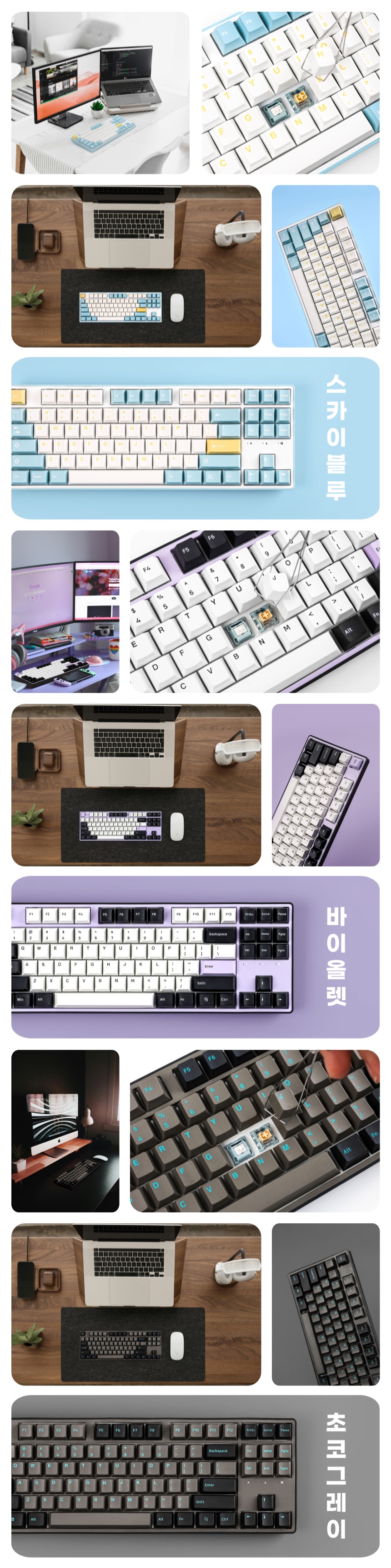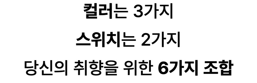- 네! 3가지 키보드 색상과 2가지 축으로 총 6가지 조합 중 자유롭게 선택하시면 됩니다