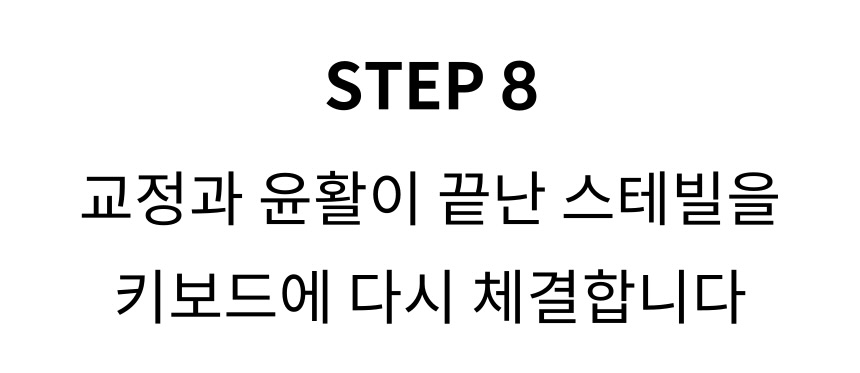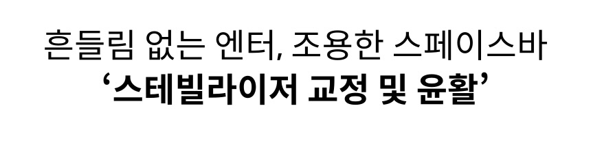 - 엔터, 백스페이스, 시프트, 스페이스바 등 길이가 긴 키에는 내부에 금속 철심 (와이어)이 들어가 있습니다. 이 철심은 잘못 설치되거나 윤활이 안 되어 있으면 '덜컹’거리거나 소음, 불균형한 키감을 유발하는데 교정을 통해 스테빌을 정확히 정렬하고 윤활까지 하면, 장시간 사용에도 흔들림 없고 조용한 키감을 제공합니다