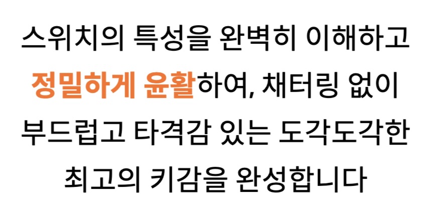 하지만, 한 번의 섬세한 작업만으로, 타건감이 훨씬 부드럽고 경쾌해지고 소음은 줄어들며, 손끝에서 오는 만족감이 달라집니다.