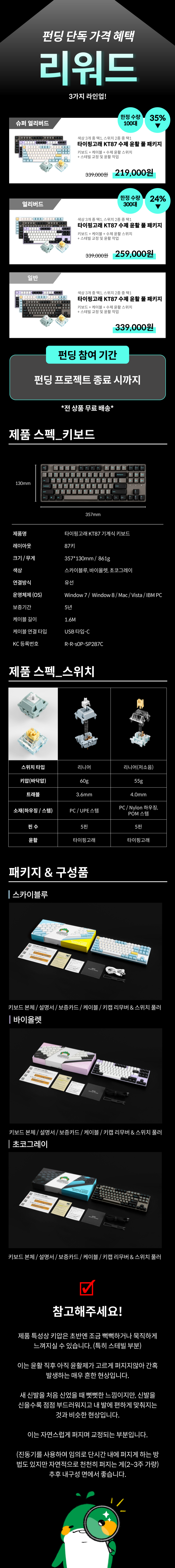 - 키보드 본체, 설명서, 보증카드, 케이블, 키캡 리무버 & 스위치 풀러로 구성돼 있습니다