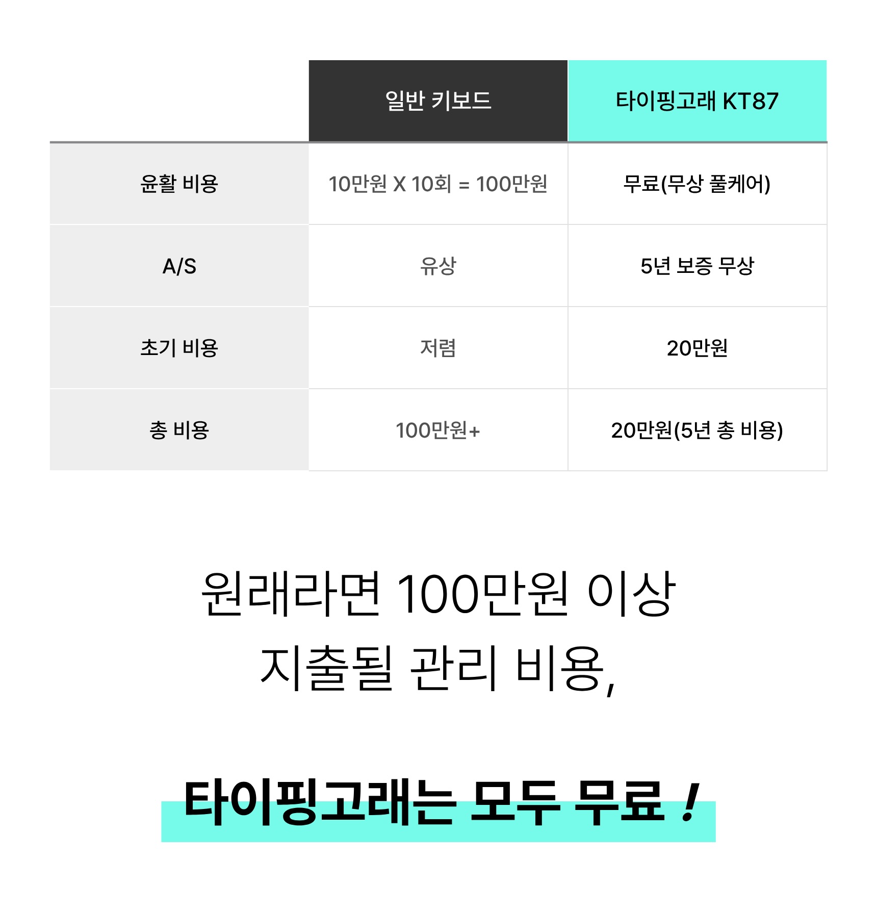 - 타이핑고래 제품은 구매일로부터 5년간 보증기간이 적용됩니다. 보증기간 내에는 제품 관련 문제 발생 시 무상 점검 및 사후관리를 지원해 드리니 안심하고 사용하세요!