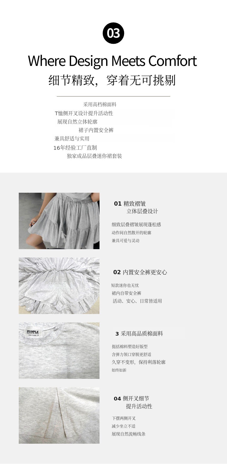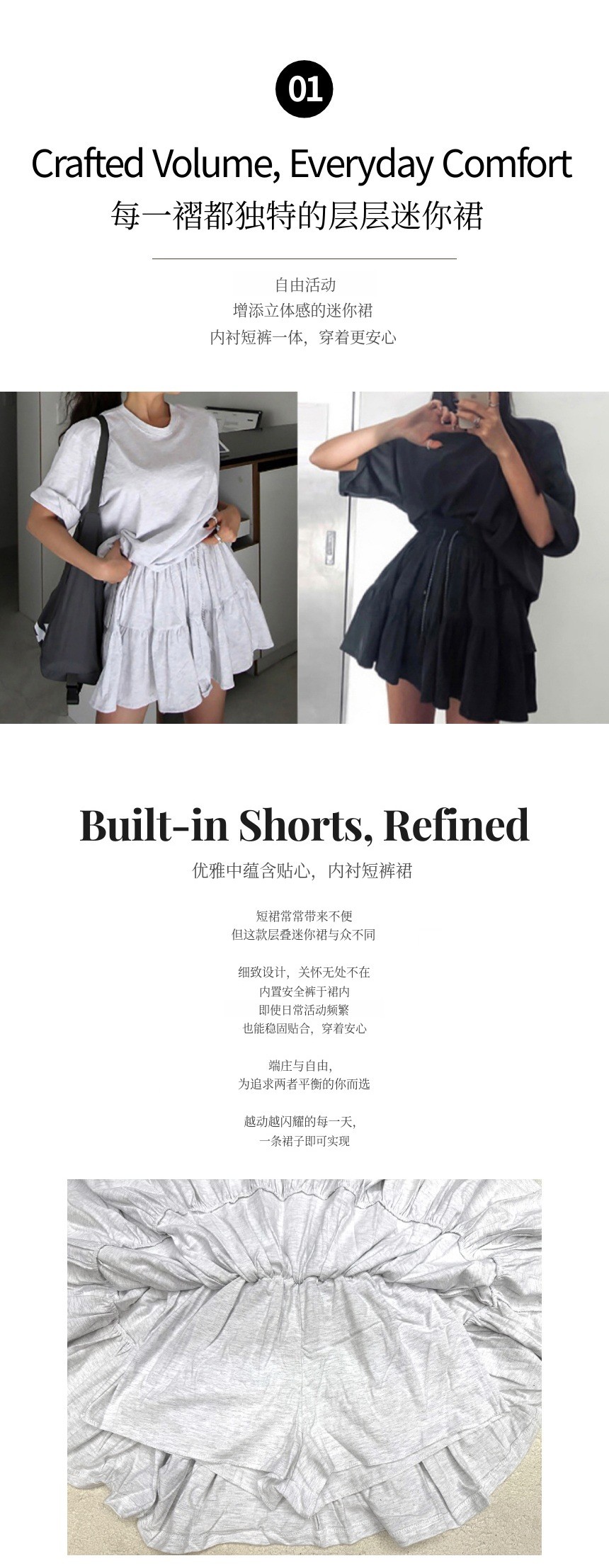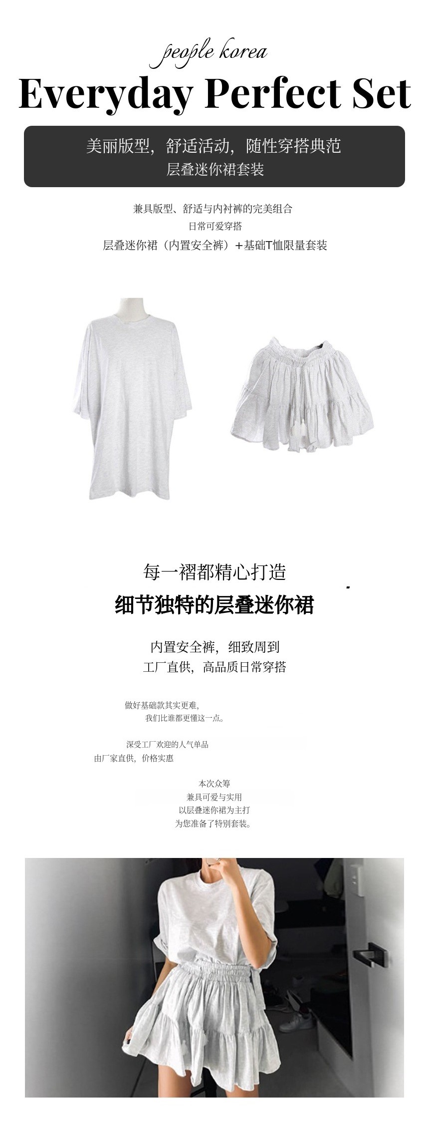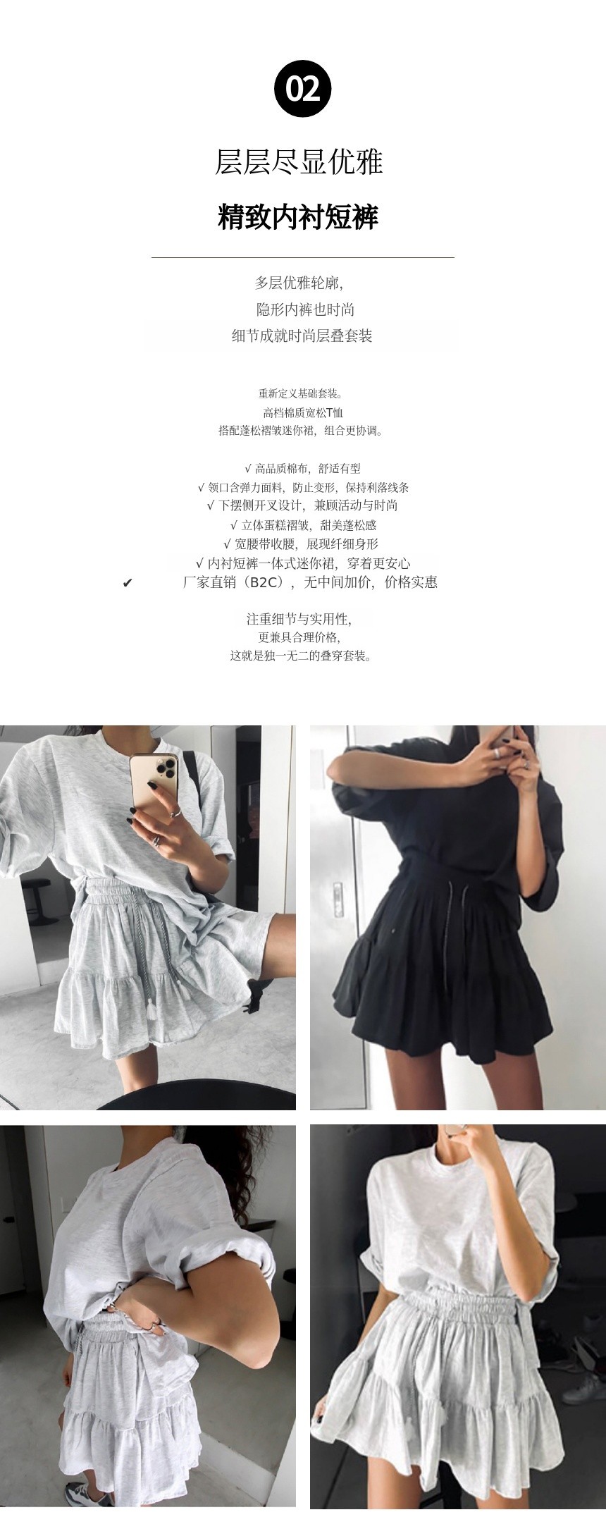 1. 👗 内置安全裤的层叠迷你裙套装 - 基础T恤搭配内置安全裤的层叠迷你裙 2. ✨ 舒适与优雅轮廓兼备 - 侧开衩与内置安全裤提升活动性与稳定性 3. 🎁 限量合理价格提供 - 制造商直销高品质套装