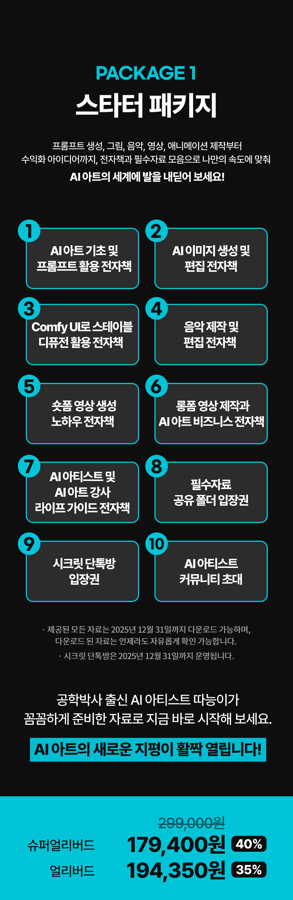 (라이브 강의, 실습 미션, AI 아티스트 커뮤니티, 오프라인 전시 기회 등 모든 혜택 자동 포함)