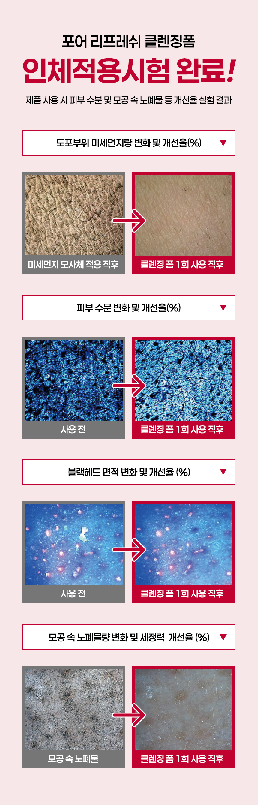 보습 성분이 함께 함유되어 세안 후에도 피부가 촉촉하게 유지됩니다.