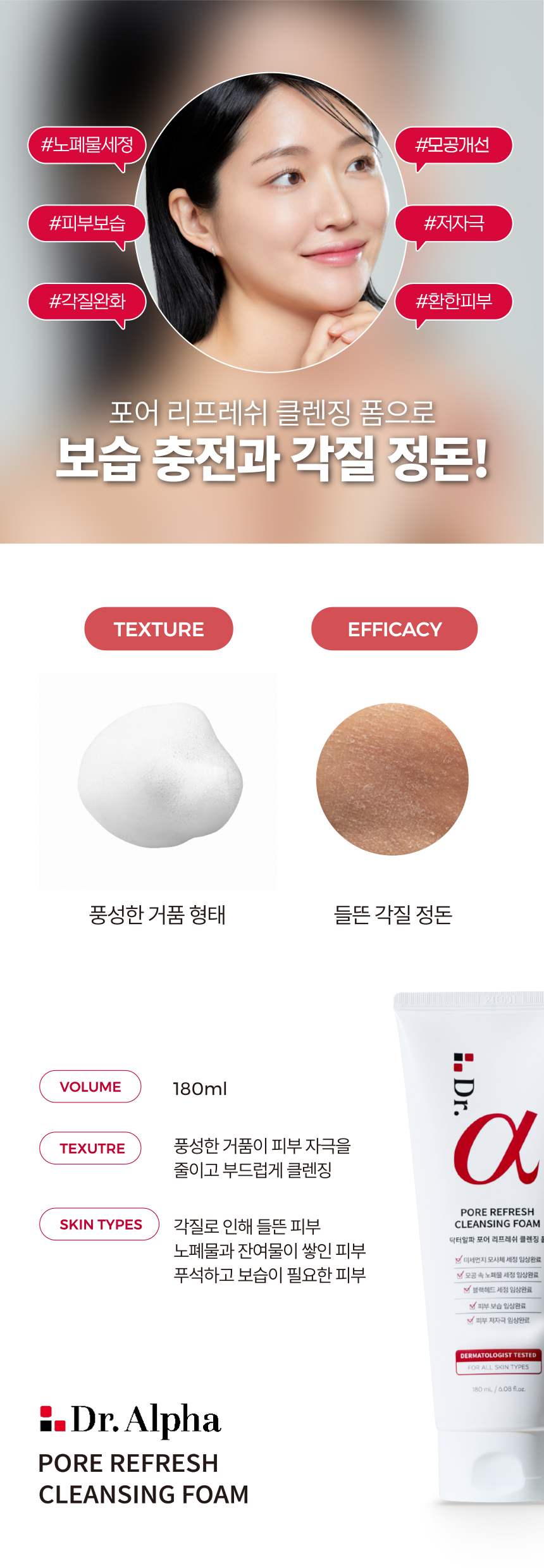 닥터알파 포어 리프레쉬 클렌징폼은 단순 세정에만 그치는 평범한 클렌저가 아닙니다.