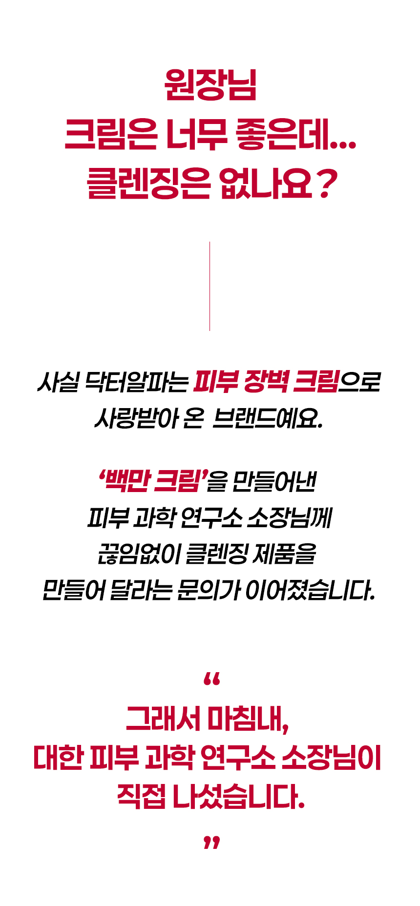 수많은 환자들이 반복되는 피부 문제로 힘들어하는 모습을 보며, 근거 있는 피부 과학과 임상 경험을 토대로 꼭 필요한 제품을 만들자는 마음으로 시작한 브랜드입니다.
