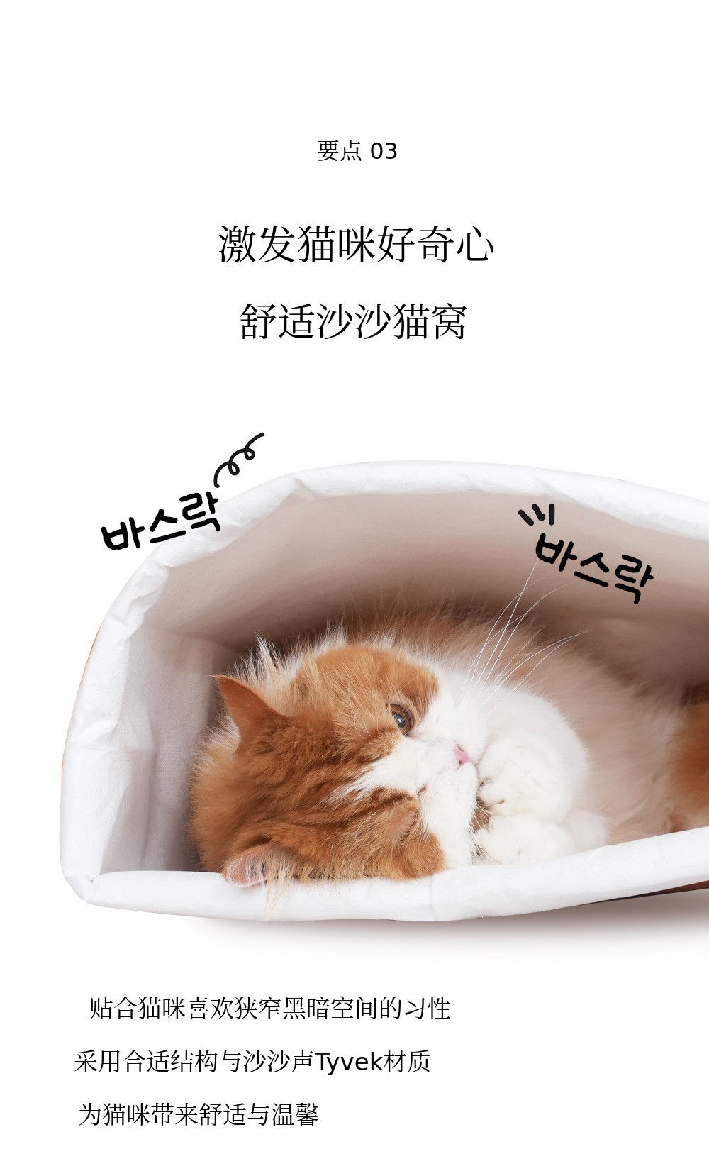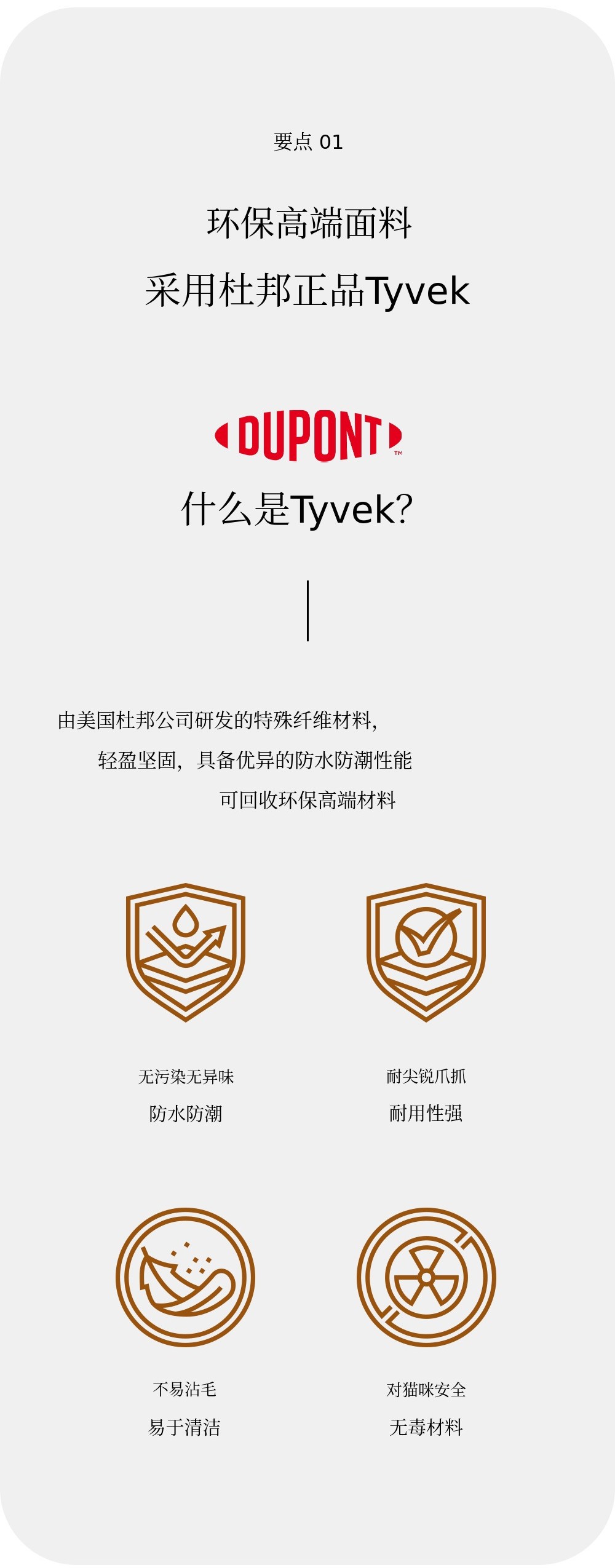 选择了环保再生材料杜邦Tyvek面料,还捕捉到了猫咪喜欢的沙沙声。
