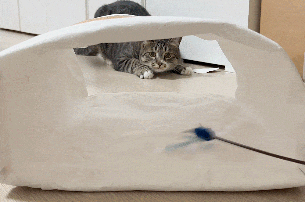 尝试买过各种类型的藏身屋,但猫咪很快就厌倦或很快损坏了ㅠㅠ
