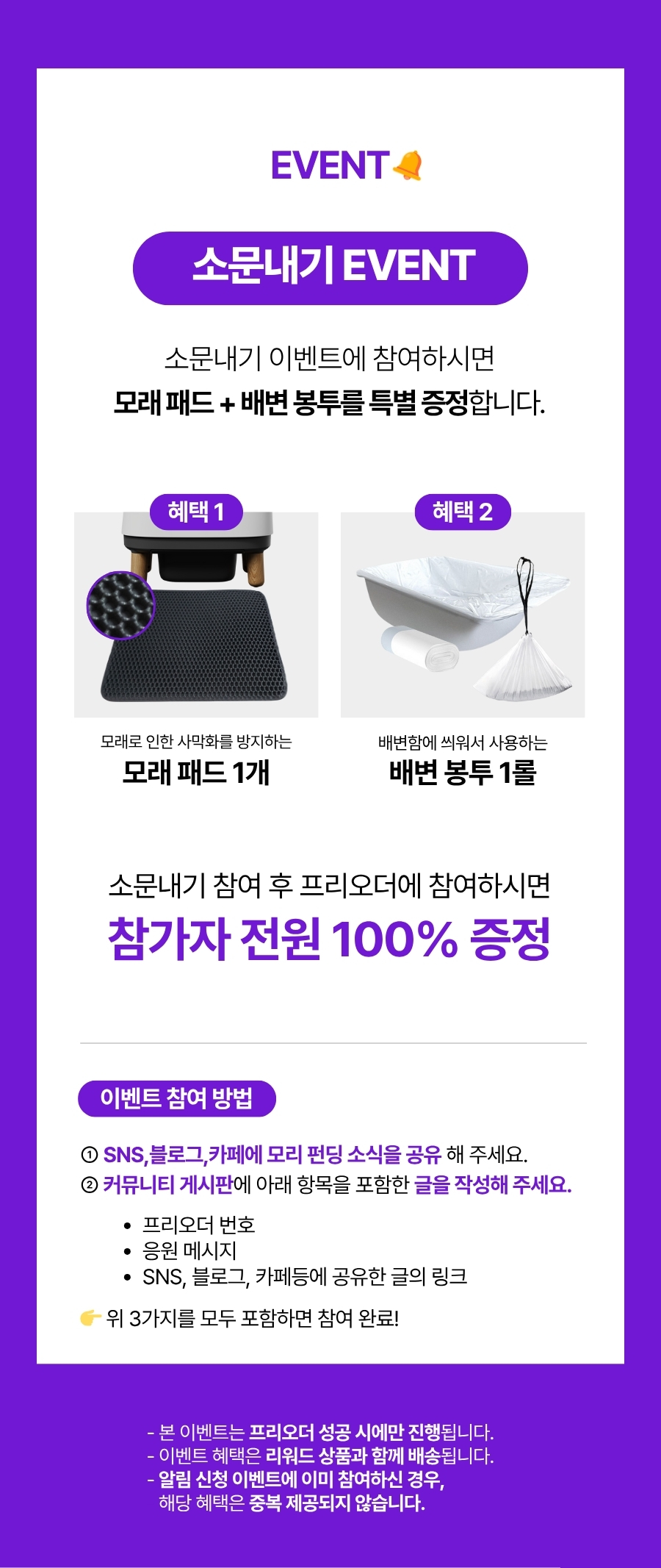 1. 🐱 Mori猫自动化厕所 - 宽敞开放设计,自动清洁与APP联动 2. ✨ 猫咪与主人便利 - 减轻清洁负担,实时监控健康状态 3. 🎁 WADIZ独家优惠 - 特别折扣及砂垫、排便袋赠送