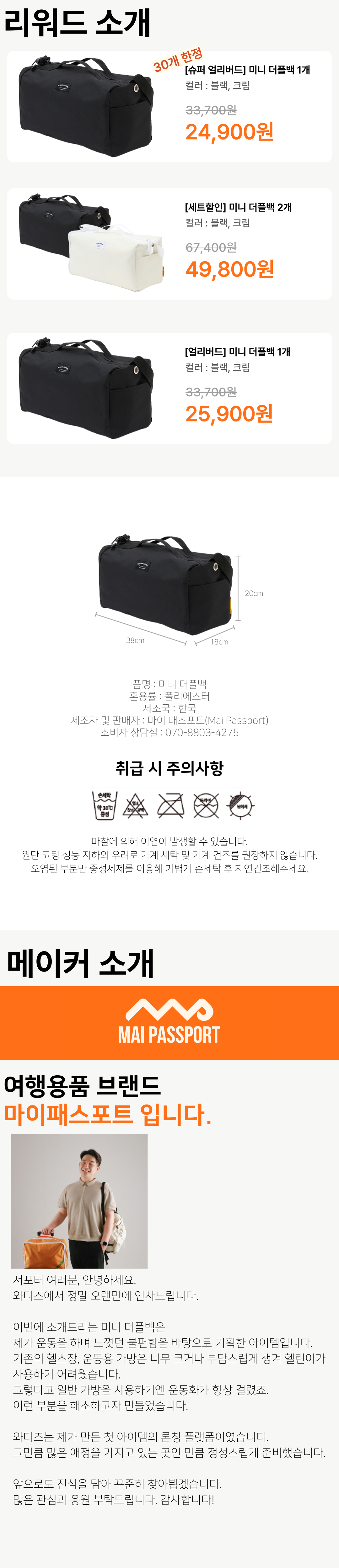 [2万韩元档/运动]健身达人们快来集合!可分隔收纳运动鞋的可爱运动包