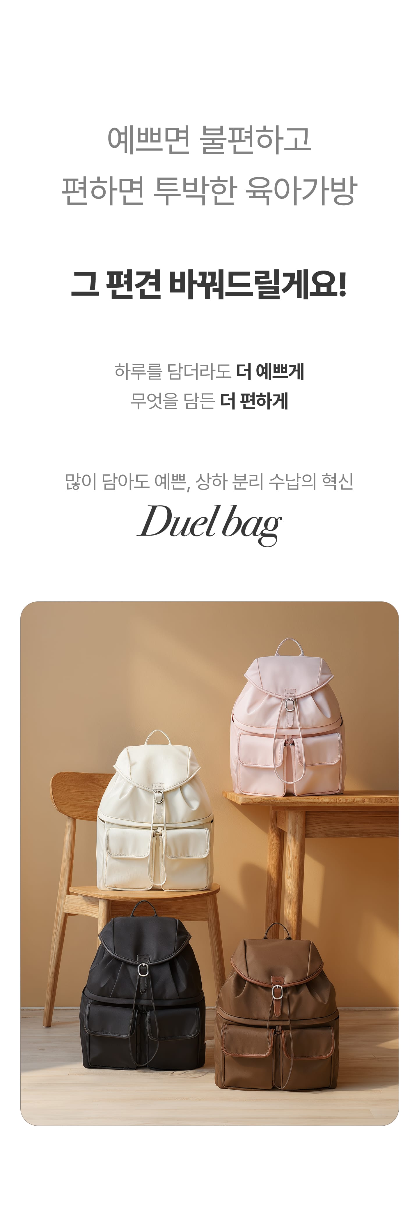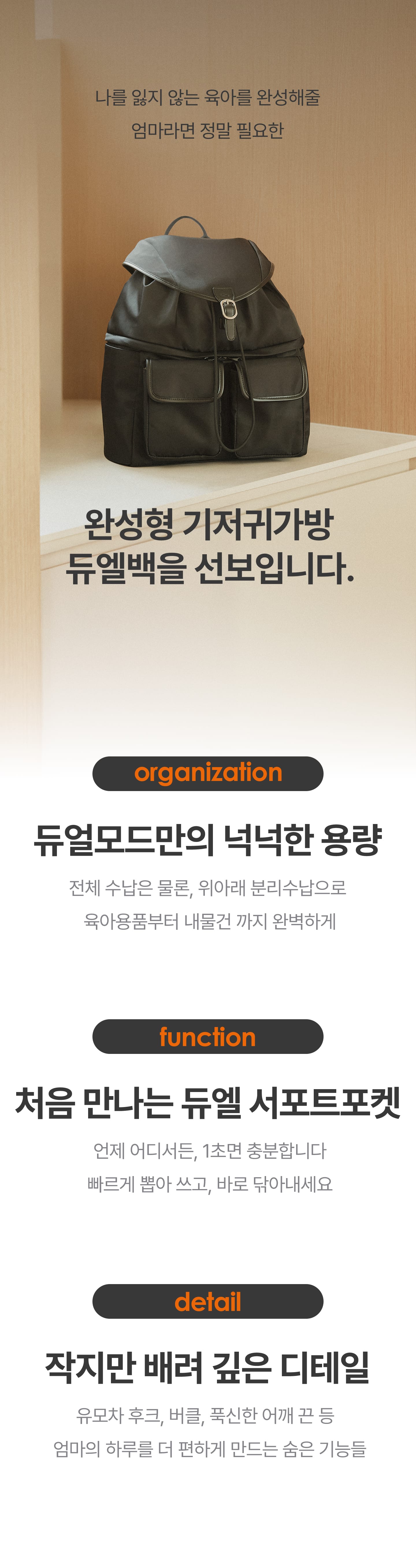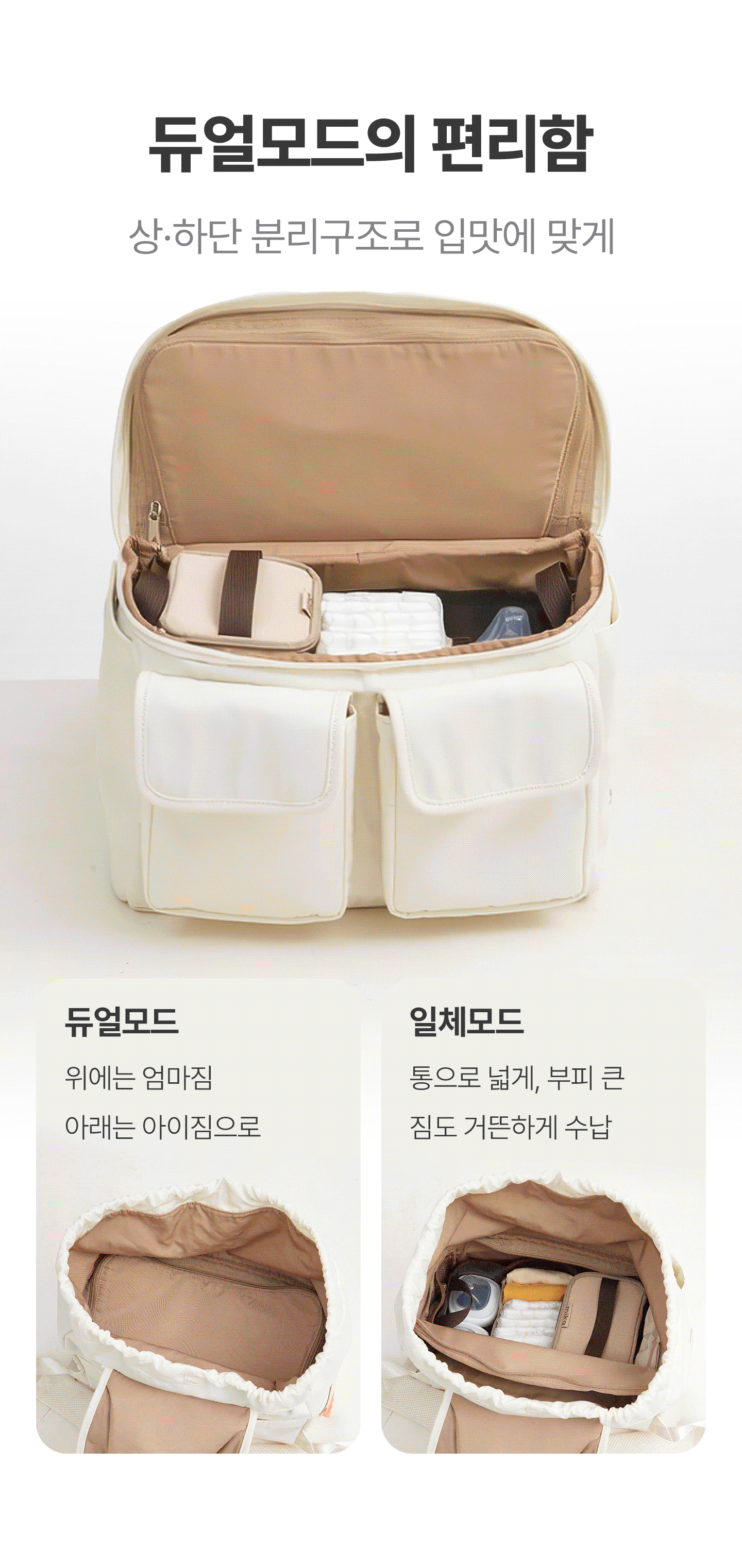 1. 🎒 上下分离收纳Duel包 - 创新设计,轻松收纳全天物品 2. 👜 育儿实用多功能包 - 配备湿巾和垃圾袋口袋,细节贴心 3. 💸 优惠及套装福利 - 单品及套装购买享折扣及赠品